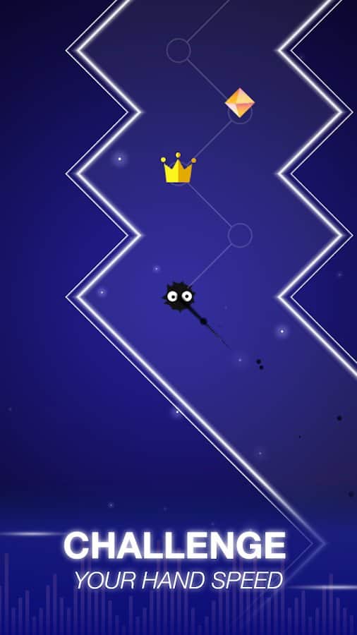 Dot n Beat - Test your hand speed – захватывающая музыкальная аркада на андроид, где вы будете управлять светящимся шариком. Эта игра на деле проверит ваш музыкальный ритм и скорость пальцев. Касайтесь экрана своего телефона или планшета в нужный момент и пройдите все испытания игры пересекая платформы или перемещаясь в лабиринте. Двигайтесь в такт музыки и начните свое путешествие прямо сейчас. Набирайте максимальное количество очков и собирая бриллианты по пути. Соревнуйтесь с друзьями за лучшие результаты и поднимайтесь все выше в таблице лидеров.
