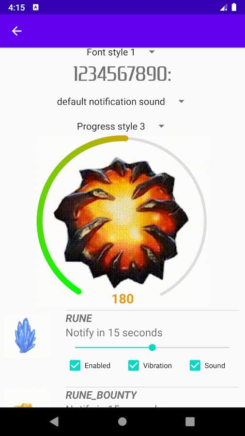 Распланируйте свое время при игре в Dota, настроив нужный таймер для получения нейтральных предметов. Улучшите свои способности лучше играть в несколько кликов, а также сделайте интересное времяпровождение наиболее комфортным. Пройдите простое обучение и сразу поймете что к в чему, ведь сам дизайн, анимации и полезные функции гармонично дополняют друг друга. Добавьте руны по желанию и настройте их характеристики: название, фото, время запуска, размер шрифта. Скачайте один раз и пользуйтесь всегда!