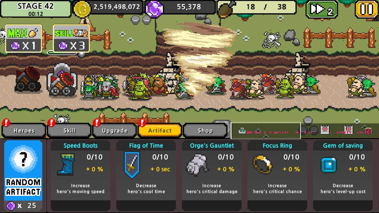 Dots Heros - при создании которой студия Mr.Games решила не придумывать велосипед и пойти проверенным путем, используя уже наработанные приемы и модели. Как следствие на наш суд разработчики выпустили пиксельную ролевку с боями из серии стенка на стенку элементами тач-аркады и обороны башен. Вот такая солянка, но при этом стоит отметить что создателям игры удалось довольно гармонично объединить все элементы в одно. Как и большая часть сюжетов подобных игр, история Dots Heros разворачивается в сказочном королевстве, к сожалению большего о сюжете не сказать. Игровой процесс заключается в следующем, по разные стороны экрана находятся базы соперников, с вражеской базы на вашу наступают войска, ваша задача остановить наступление. А вот над средствами борьбы с вражеской агрессией разработчики поработали. Помимо пехоты, конницы и прочих людских ресурсов вам будут доступны различные спец-возможности и конечно же море магии.
