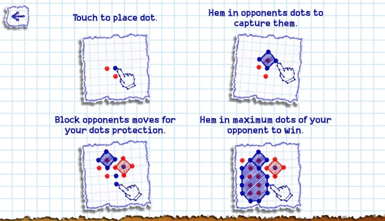 Точки Онлайн / Dots Online - Все наверно помнят игру в точки. Из листа бумаги в клеточку игра добралась до андроид устройств. Ваша задача ставить точки, поедая точки вашего соперника. Выигрывает тот, кто съест больше точек чем соперник. Игра имеет онлайн мульти плеер, так же можно поиграть с друзьями через протокол блютуз или вдвоем на одном устройстве. Однако есть и одиночная игра с компьютером.