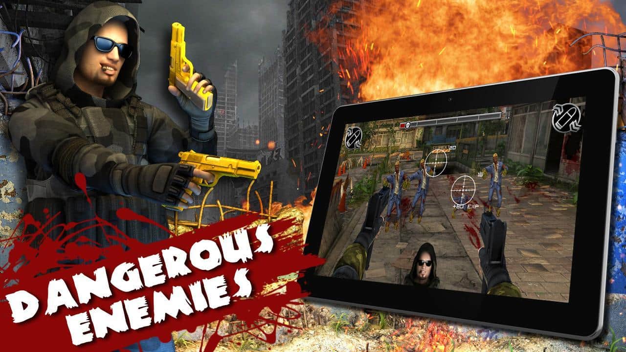 Double Gun - шутер на андроид, в котором вы будете отстреливать орды зомби, инопланетян и скелетов. В этой игре вы отправитесь в недалекое будущее, где попадете в мир полный хаос. Биологическое оружие, созданное людьми, заразило большую половину всего человечества, люди превратились в зомби и в добавок еще вторглись инопланетяне. И теперь вам предстоит взять в руки самое мощное оружие и отстреливать всю нечисть, на своем пути. В вашем арсенале будет большой выбор различного оружия, с помощью которого вы сможете выжить, стреляя одновременно с двух рук.