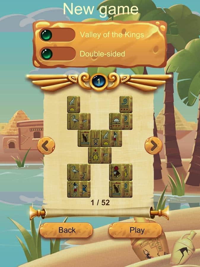 Создатели Double-sided Mahjong Cleopatra переносят нас из Азии в Египет времён древних фараонов и Клеопатры, видимо за неё и предстоит играть. Как данное увлечение появилось в этих жарких широтах остаётся загадкой. Геймеров ждут более 150 уровней, на которых им необходимо разбирать композиции, выискивая не одинаковые иероглифы, а характерные для этого региона знаки.