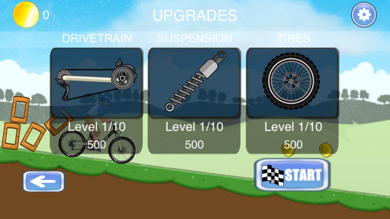 Down the hill 2 – экстремальные велосипедные гонки по пересеченной местности на андроид. В этой игре вы будете контролировать велосипедиста, который ездит по опасным трассам с различными препятствиями. Наклоняйте свое устройство и управляйте велосипедистом, который мчится на максимальной скорости через опасные петли, пандусы и ямы при этом не забывайте собирать все монетки разбросанные у вас на пути. Путешествуйте по девяти различным мирам и открывайте для себя новые велосипеды, а также улучшайте свои, делая их более скоростными. Пройдите опасные участки за короткое время и поставьте свой рекорд по скорости.