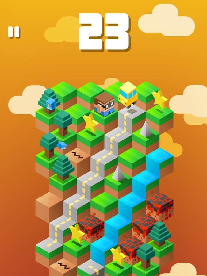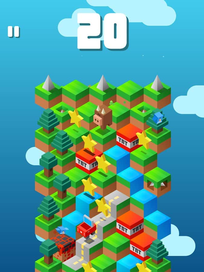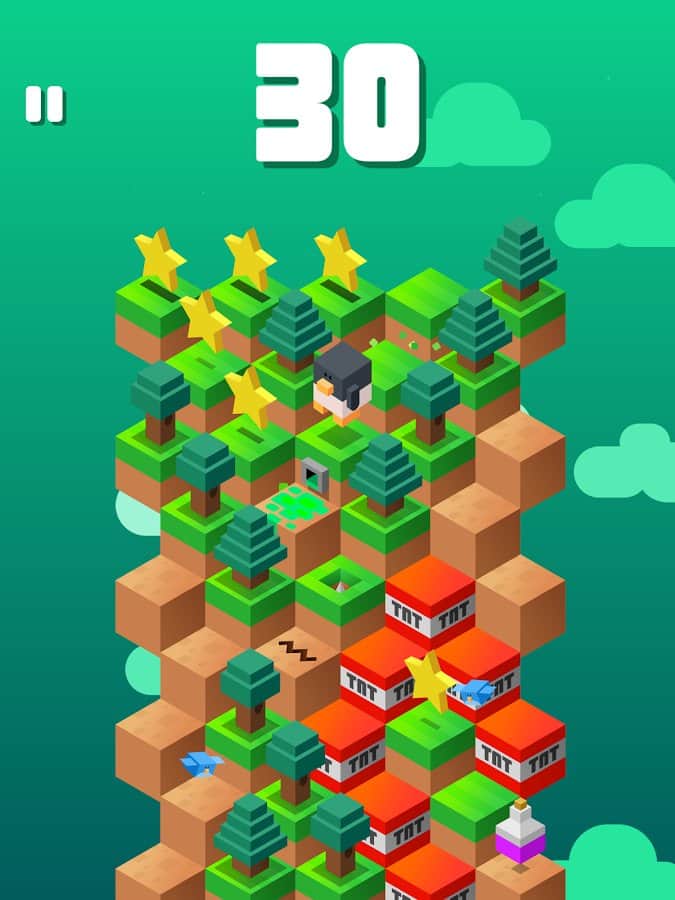 Down The Mountain - игра которую можно отнести к классическим представителям жанра тайм-киллеров. простой, по своей сути геймплей, сочетающий в себе элементы аркадной головоломки и ранера, не смотря на свою простоту достаточно сложен в освоении. Красочная графика в кубическом стиле, понятное управление, забавные персонажи. Другими словами Down The Mountain направлена на то чтобы игрок смог скоротать несколько свободных минут с максимальным удовольствием. Сама игровая механика довольно проста, ваша задача управляя героем спуститься с огромной кубической горы, перепрыгивая с блока на блок. Но на деле оказывается все сложней, на вашем пути встретится огромное количество всевозможных препятствий. Помимо сложностей разработчики приготовили и ряд приятных сюрпризов, бонусов и улучшений. Всего в игре более 200 уровней и 60 персонажей.
