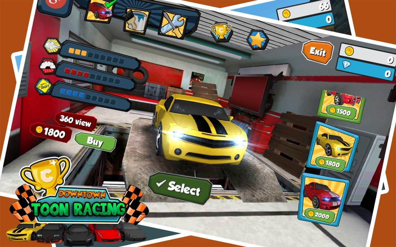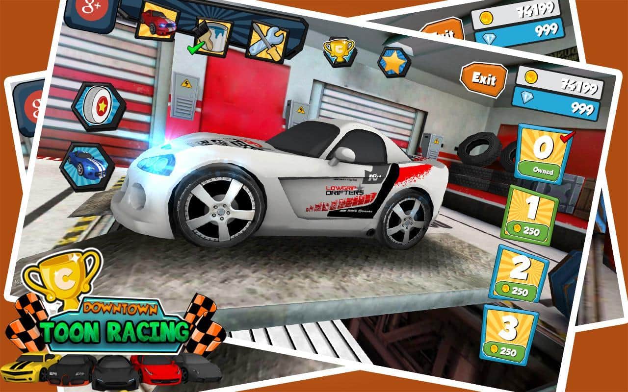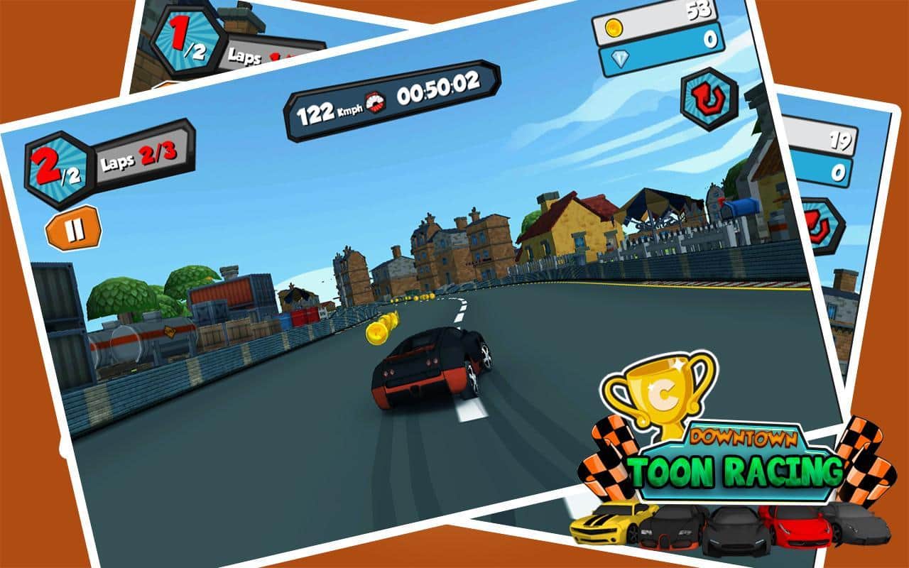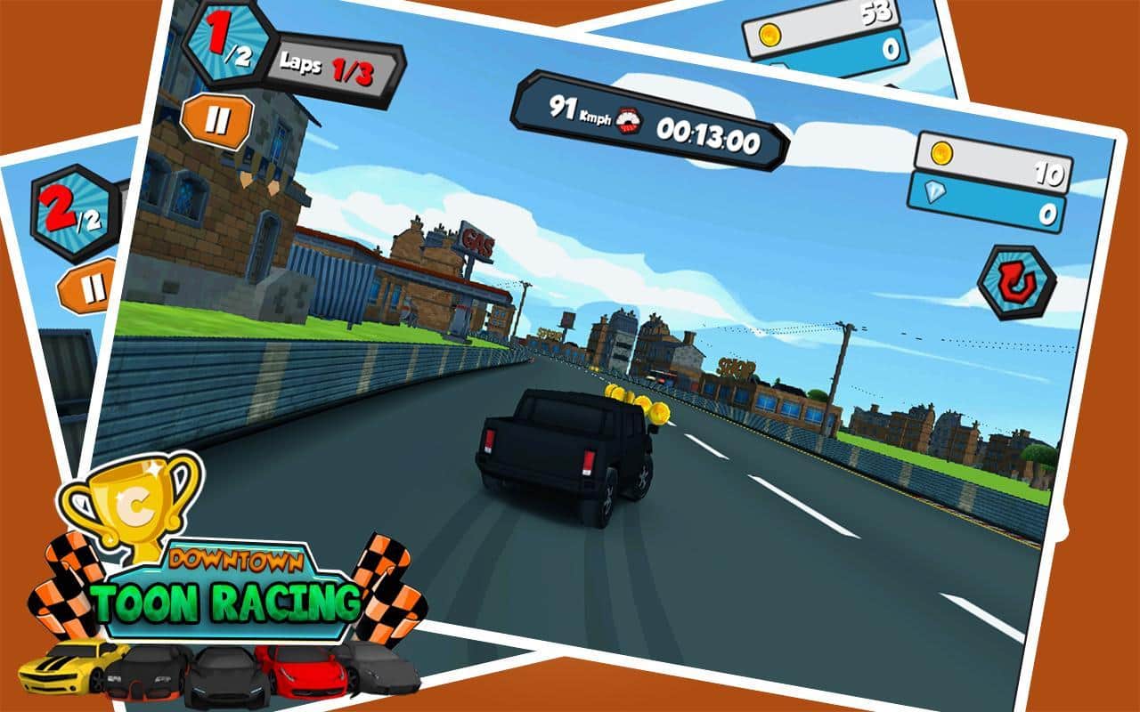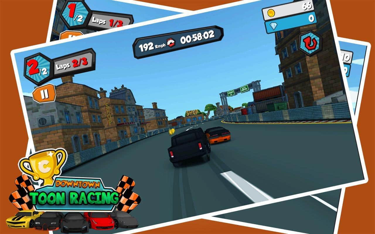 Downtown Toon Racing - отличные аркадные гонки на бешеных скоростях по различным трассам. Испытайте свой новенький автомобиль, гоняйте по городу и собирайте монетки, за которые впоследствии можно купить различные улучшения для вашего автомобиля. Можете изменять цвет машины наносить аэрографию и многое другое.