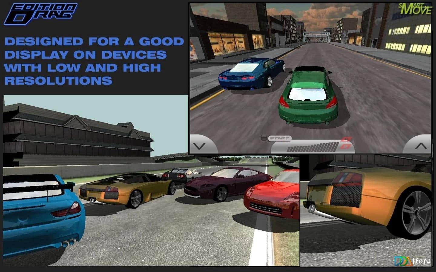 Drag Edition Racing 3d 2014 - Очередной драг рейсинг на андроид, но с небольшим преимуществом. Дело в том, что графика в игре максимально упрощена, чтобы игра охватила большое количество устройств, в том числе и самые слабые. А так игра не отличается от подобных: высокоскоростные машины, тачки с трамплинами, тяжелые соперники, и много другое. Все это вас ждет в игре от отечественного разработчика.