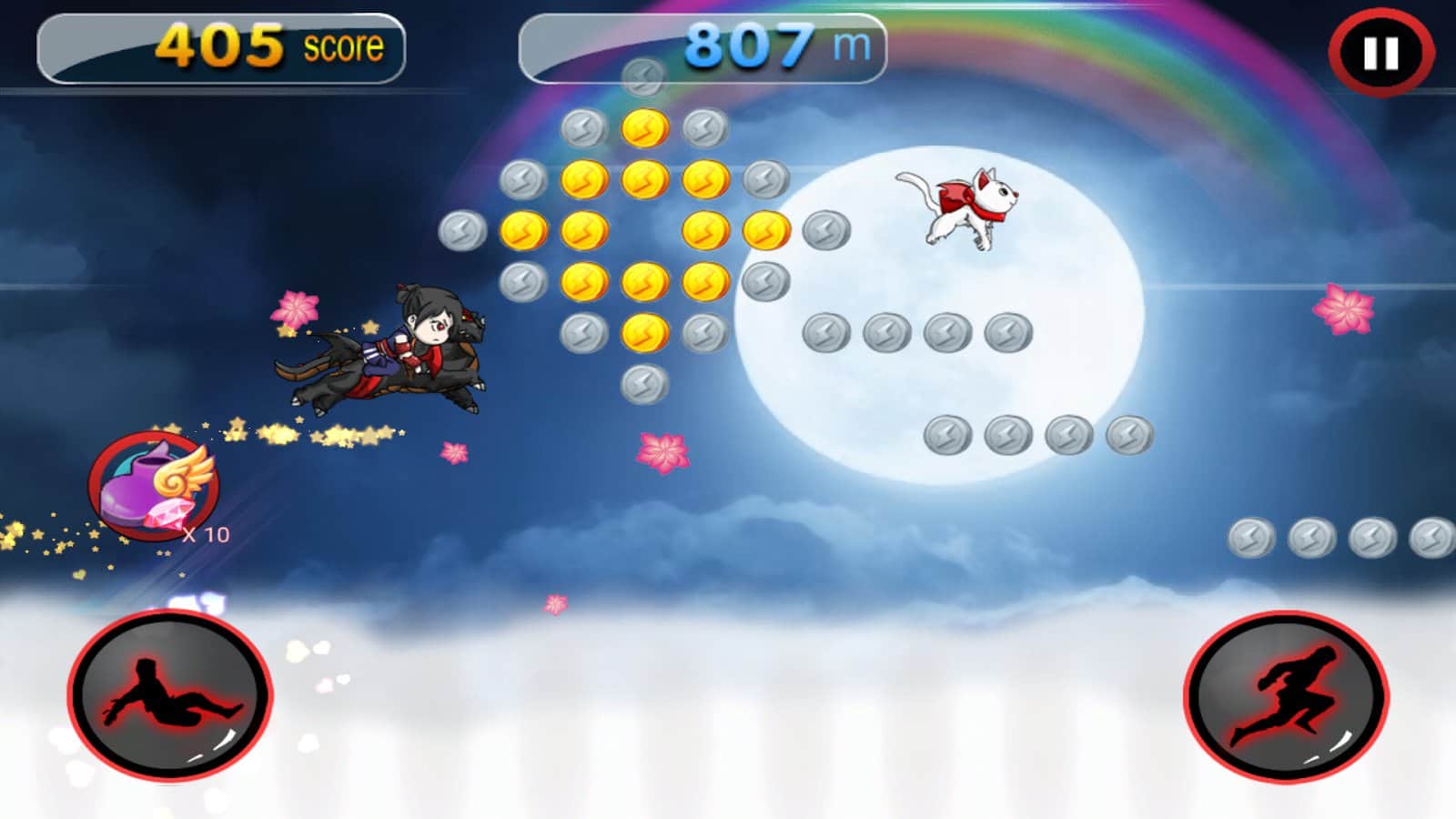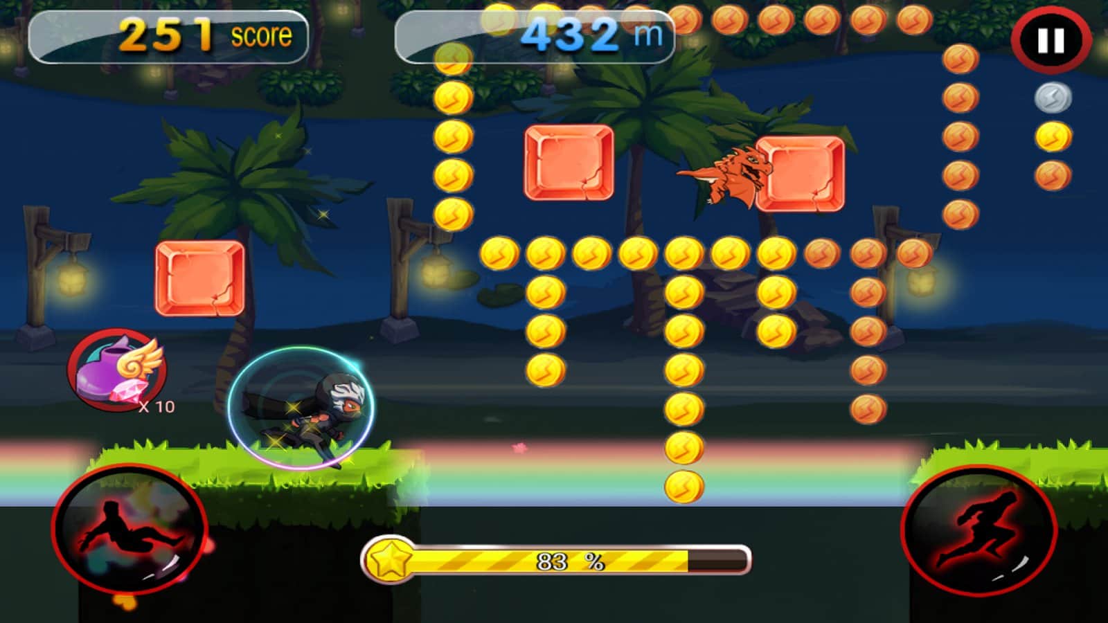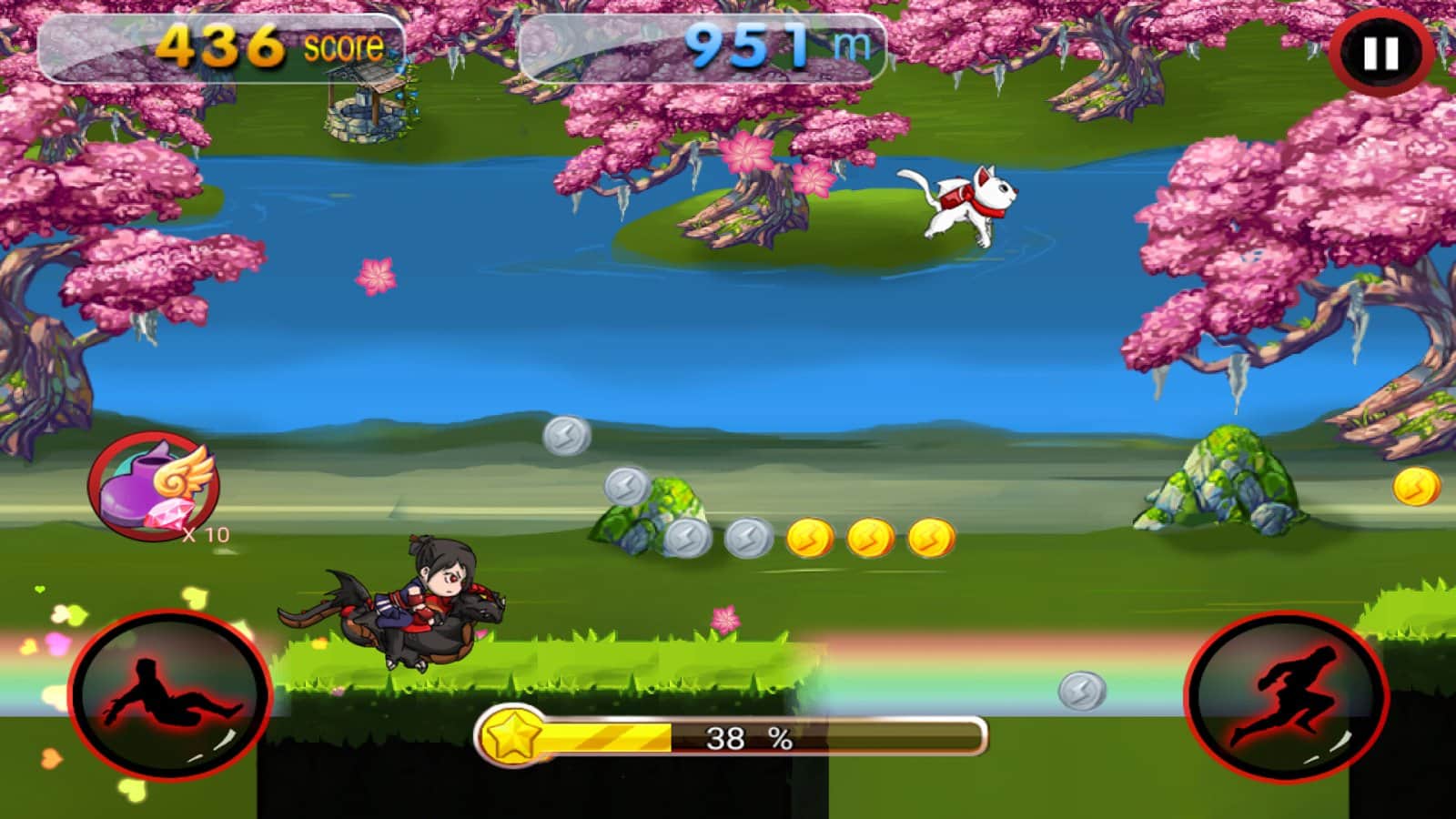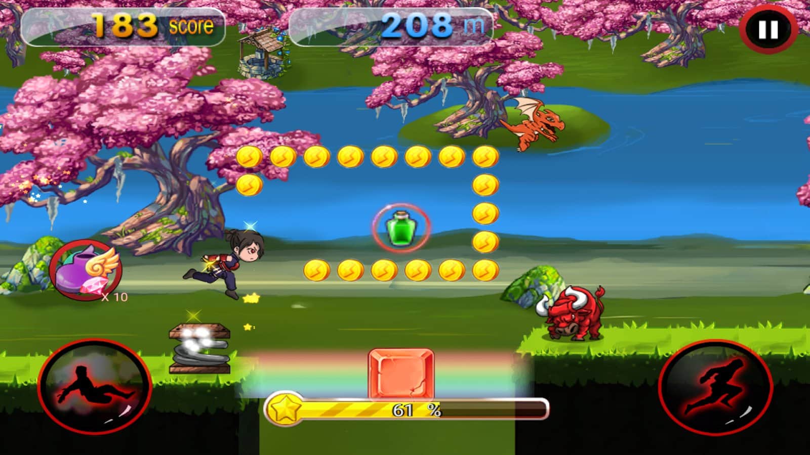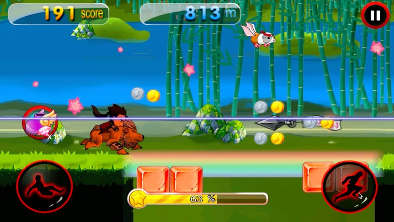 Dragon Ninja Rush – возьмите под свой контроль отважного ниндзя и проведите его по всем уровням игры. Бегайте, прыгайте и собирайте многочисленные монетки и усиления. Ведите своего героя вперед и обходите многочисленные преграды и пропасти у себя на пути. С помощью одного прикосновения пальца к экрану своего девайса управляйте героем и помогайте ему избегать ловушки и встречу с врагами. Вашего героя ждут многочисленные уровни, где ему необходимо уклонятся от летающих сюрикэнов, обходить заросли острого как бритва бамбука и избегать встречу с красным быком. По ходу игры открывайте новых персонажей и поднимайтесь все выше в таблице лидеров.