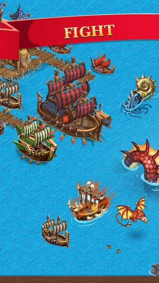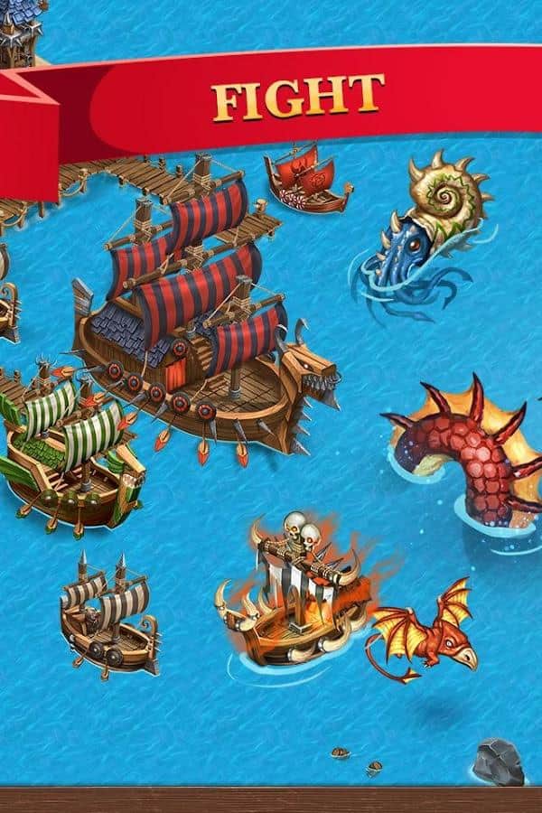 Dragons & Vikings Empire Clash - Великолепная стратегия которая во всей своей красе открывает перед вами древний мир викингов. Это не просто стратегия, это онлайн стратегия в режиме реального времени. Война между игроками здесь происходит при помощи кораблей, их здесь очень много, и все они отличаются не только по силе, но и по количеству воинов которых могут вместить. Так же на карте есть множество нейтральных деревень, и монстров, с которых тоже можно получить не мало трофеев. Воюйте и становитесь лучшим в войне за трон короля викингов.