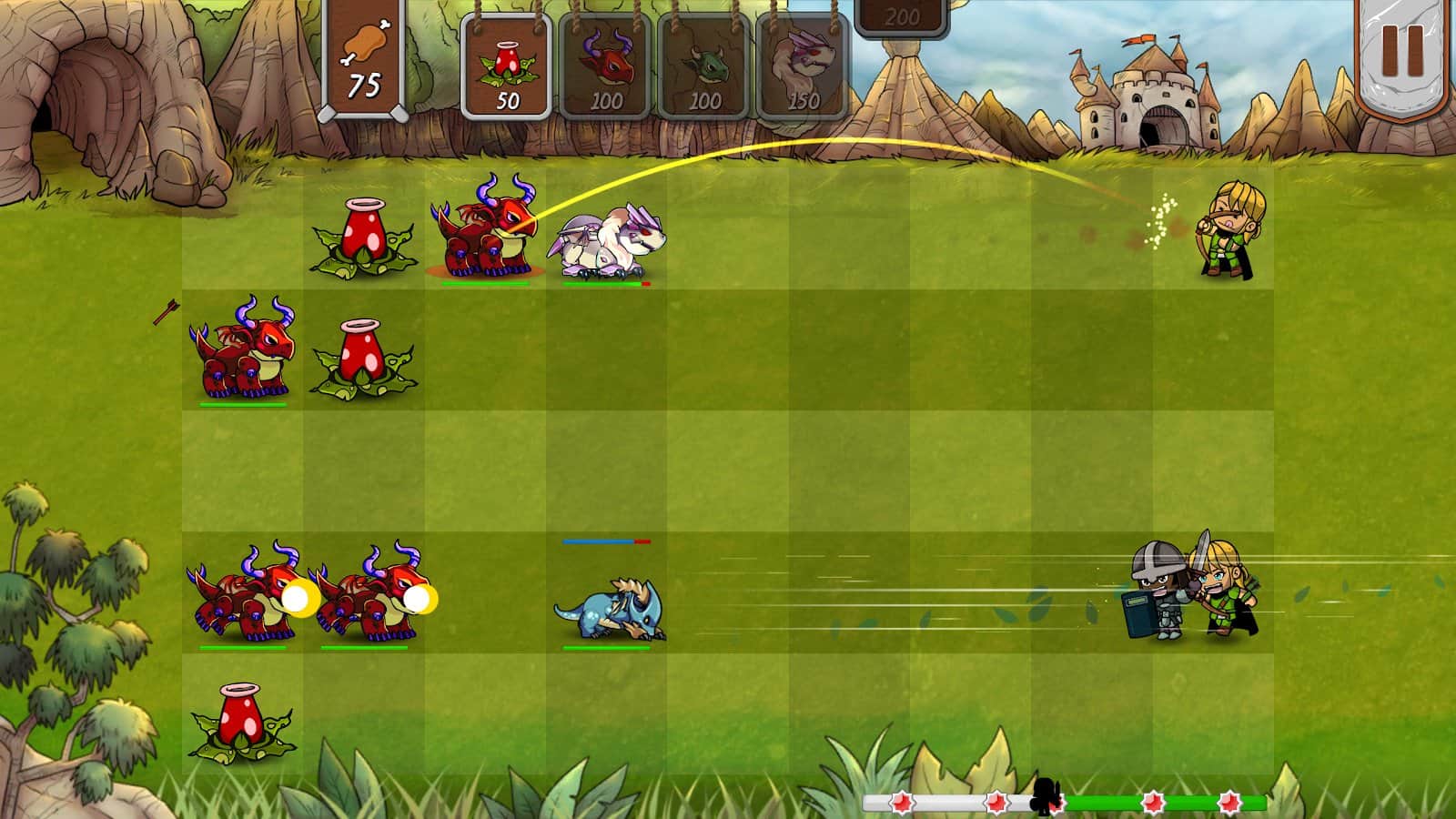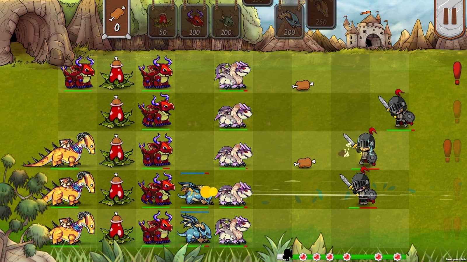 Dragons vs Knights – это классическая тактическая стратегия для вашего смартфона. Во все времена люди хотели завоевать золото драконов, ведь есть легенда, что у каждого дракона есть своя сокровищница. И в этот раз рыцари и другие, кто не прочь поживится, решили напасть на логово драконов. Пока королева драконов откладывает яйца вам необходимо обучить маленьких новорожденных дракош обороняться.Вам предстоит выбирать из списка юнитов, учитывая их умения и способности, а также правильно установить их на поле боя. Враги будут нападать в несколько этапов. Если ваша расстановка будет верна, победа в ваших руках. Каждый дракон имеет свои навыки, помните об этом.Игра понравится всем поклонникам данной классики. Динамический геймплей и качество картинки заставит вас, погрузится в игру с головой.