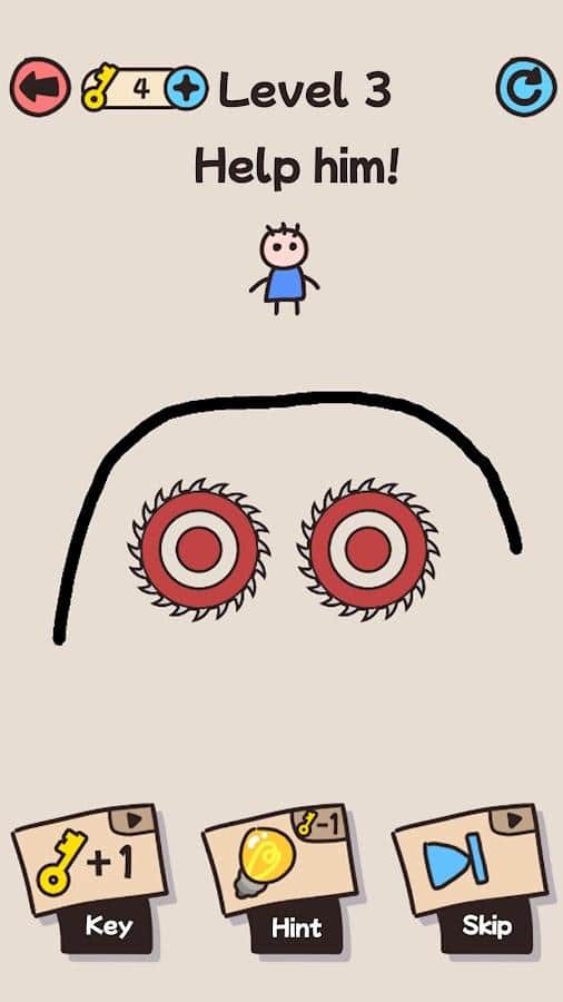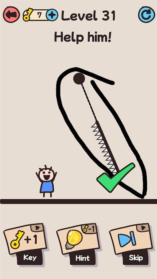 Draw Save Puzzle - vаленький мальчик в опасности и его необходимо спасти, нарисовав различные линии в зависимости от уровня и расположения потенциальной угрозы. В игре Draw Save Puzzle множество уровней от простого к сложному, простой и минималистичный интерфейс, возможность выбора цветовой гаммы фона, а также инструментов-помощников в борьбе за свою безопасность. Забавные эффекты анимации, интересная прорисовка персонажей обязательно поднимет настроение игроком и добавит мотивации проходить уровень за уровнем, наслаждаясь продуманной и простой механикой действий.