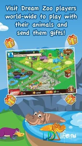 Dream Zoo - игра для андроид 2.2 выше. Отличный тайм-киллер для любителей стратегического развития, постепенного роста прибыли и расширения территории. Итак, эта андроид игра ставит своей целью сбор всевозможных животных, известных и не очень, выращивание новых видов и пр. в собственном зоопарке. Начинаем, как всегда с нуля! Постепенно вам необходимо заполнить ваши свободные вальеры животными, найти им пару, вывести новое потомство, которое может неожиданно обрадовать новым окрасом (например вполне можно вывести слона в синий горошек) или поведением. Кроме того, вы можете по своему вкусу оформить ваш зоопарк - посадить деревья, поставить фонтаны и пр. Для всего этого конечно нужны деньги, это вам не скачать Dream Zoo бесплатно!