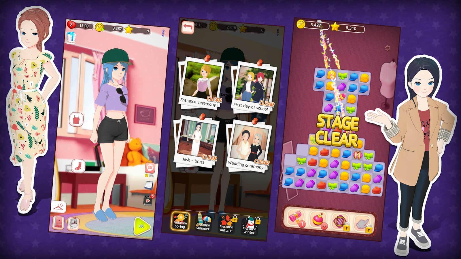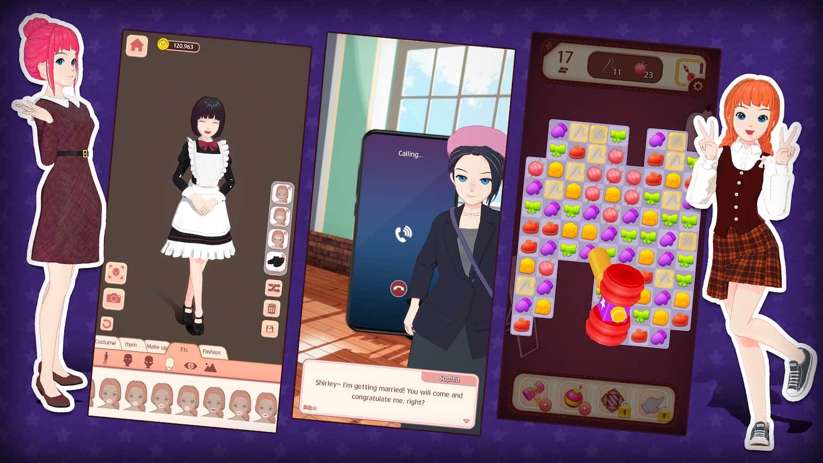 Dresscode - Fashion Designer - Собственный стиль важен для каждой девушки, но составить его, увы, не так то и просто. Особенно это касается вечеринок или важных мероприятий, где нужно соблюдать предоставленный дресс-код. К вам обратятся множество героинь прекрасной внешности, поэтому постарайтесь полностью изменить их имидж и соответствовать заданиям. Выбирайте им замечательные наряды, поработайте над макияжами и прическами, цветами волос, эмоциями, научите разным позам и играйте в мини-игру «Три в ряд», чтобы получить деньги и опыт.