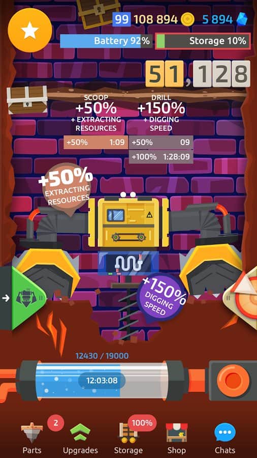 Бурило — стратегия под землёй – кликер на андроид, где вашей задачей будет бурить землю. В этой игре вы будете выступать в роли археолога, инженера и конструктора где вашей задачей будет взять под свой контроль огромный бур и вгрызаться как можно глубже в землю и находить там ценные минералы, запчасти и многочисленные усиления. Нажимайте на экран своего телефона или планшета как можно чаще и прокачивайте свой бур до невероятных возможностей. Призывайте на помощь гномов, которые помогут вам во всех ваших делах, а вот Егора гоните прочь он будет вам только мешать. Зарабатывайте большое количество достижений и бонусов в этой игре и поднимитесь на самый верх таблицы лидеров.