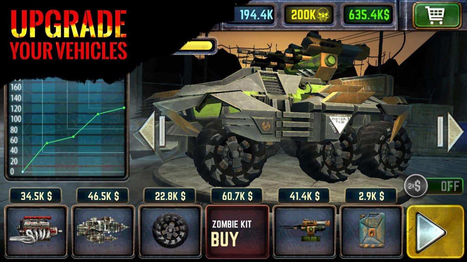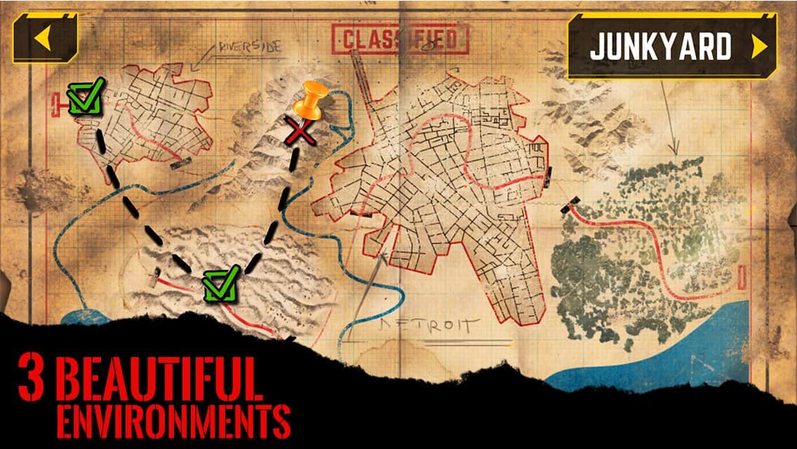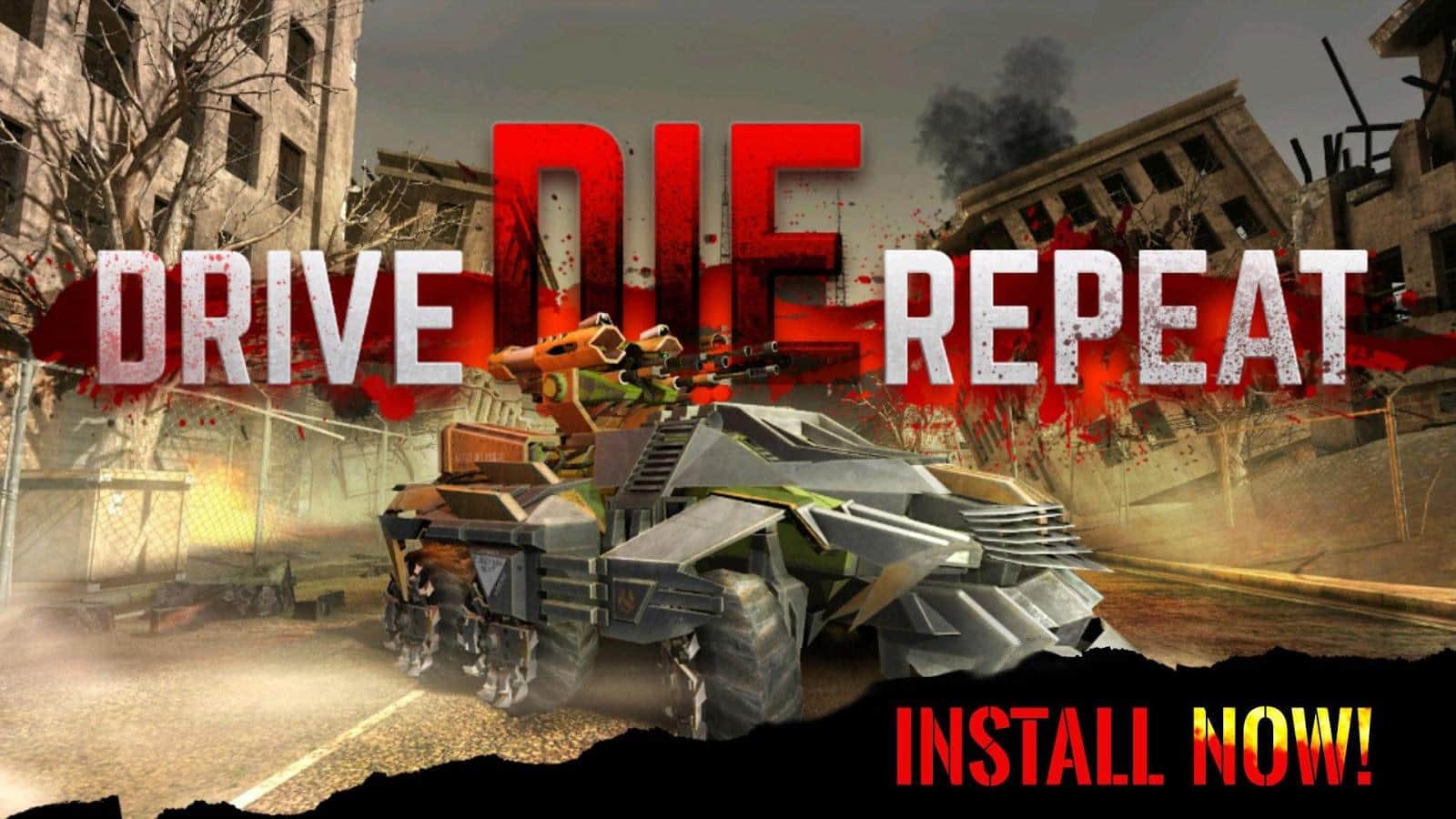 Drive Die Repeat - Zombie Game – гонки на андроид, на бронированных автомобилях по пост апокалиптическому миру игры. В этой игре вы возьмете под свой контроль огромный автомобиль, который оснащен различными пушками и другим оружием. Разгоняйте свой автомобиль до максимума и на огромной скорости тараньте различные препятствия и зомби вставших у вас на пути. Получайте вознаграждение за каждого уничтоженного зомби и приобретайте на эти деньги новый более мощный автомобиль или модернизируйте свое оружие. Особенностями игры являются три уникальных мира, мощное оружие и возможность улучшить свой автомобиль.