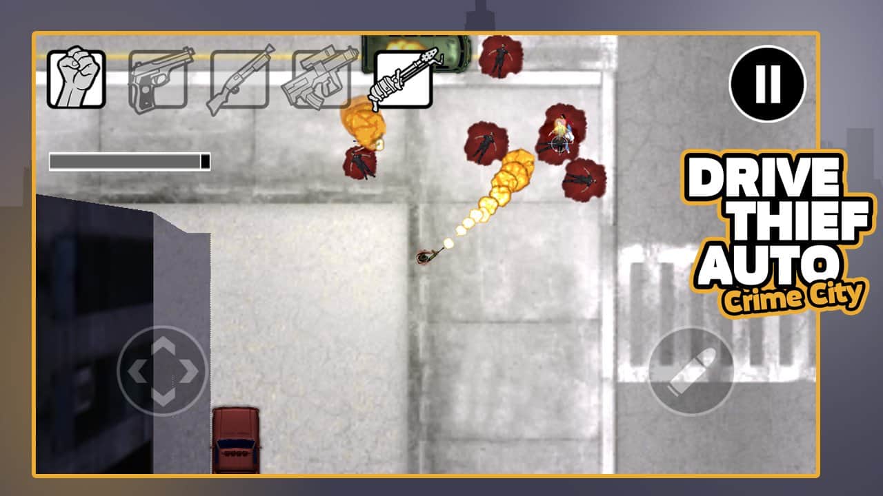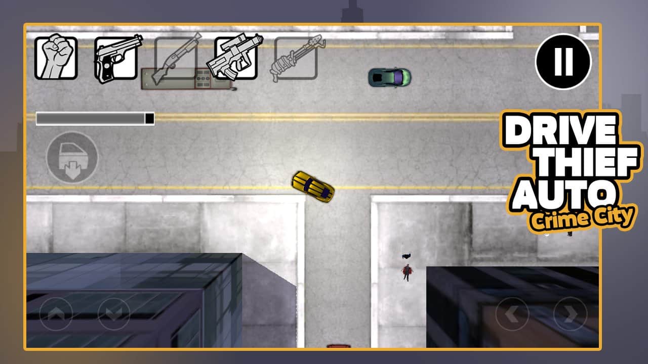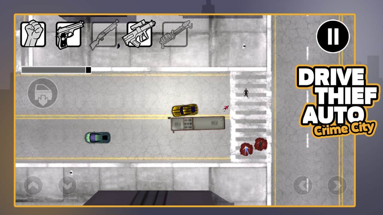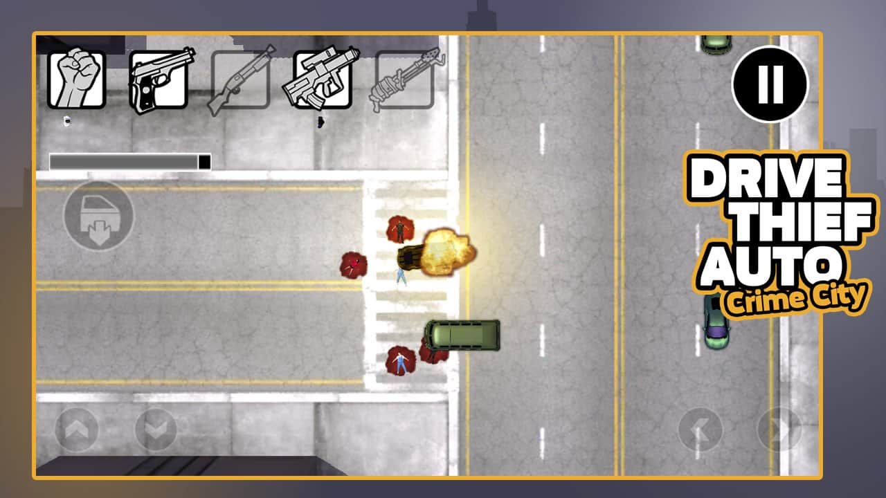 Drive Thief Auto: Crime City – игра, которая по всей видимости вдохновлялась первыми частями Grand Theft Auto. Вид сверху, бегаем своим героем угоняем тачки, стреляем по всему живому. Как и полагается, в игре много различных тачек: супер быстрые спортивные автомобили, внедорожники, автобусы и даже большой пожарный грузовик. С оружием тоже всё в порядке: пистолеты, автоматы, огнемёты и другое оружие. Делайте всё, что вам захочется, крушите и убивайте, угоняйте и спасайтесь бегством от копов. Станьте уважаемым мафиози в этом большом городе. Открытый мир ждёт своего игрока.