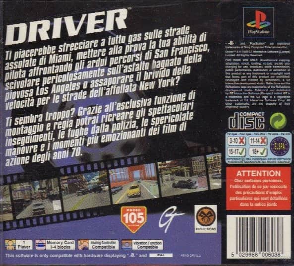 Driver - You're the wheelman - теннер пытается раскрыть крупное дело под прикрытием, выполняя полученные мисси от криминального синдиката! Главный персонаж будет развозить бандитов по различным объектам, где они будут делать свои грязные дела, а сам в перерывах между заданиями будет искать их главнокомандующего. Объездите аж несколько штатов, включаяя Сан-Франциско, исследуя совершенные преступления в виде убийств, краж, угроз другим бандам, автокатастроф и прочего. Рано или поздно герою надоест делать грязную работу, но ради дела ему необходимо потерпеть.
