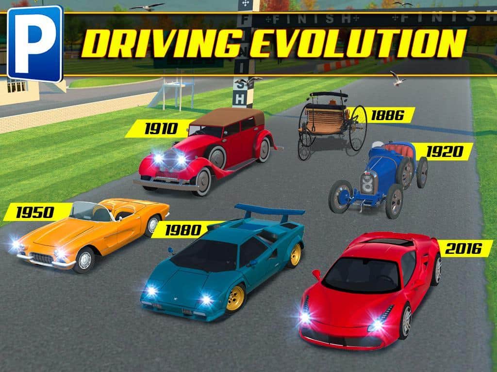 Driving Evolution - Разработчики игры предлагают вам по участвовать в гонках на самых различных автомобилях. Начиная с первых авто созданным человеком и заканчивая самыми современными супер карами. Садитесь за руль ретро автомобилей и выигрывайте гонки. Открывайте все новые автомобили и узнавайте ветку эволюции автомобилей по ближе.