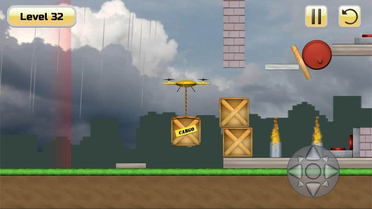 Drone Loader – возьмите под свой контроль дрона-квадрокоптера и проведите его по всем уровням игры выполняя различные задания. В этой игре вашей главной задачей будет управлять дроном и перевозить специальные грузы в указанные места. Проверьте на деле свою отличную реакцию, ловкость и сообразительность. Для управления дроном используйте специальные кнопки, расположенные на экране вашего девайса, а также многочисленные устройства, приспособления и платформы. С каждым новым уровнем сложность игры будет значительно увеличиваться и вам придется изрядно постараться, чтобы пройти все уровни игры. Пройдите все 40 уровней и при этом не повредите дрона.
