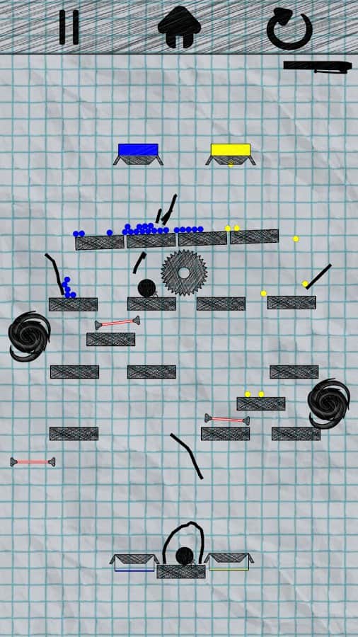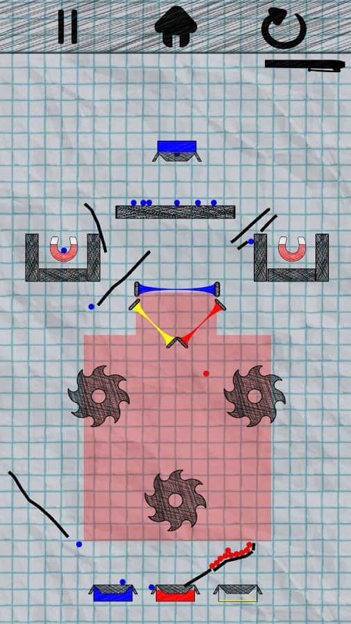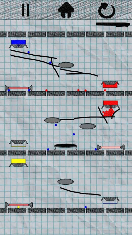 Drop It - Игра для всех возрастов! Эта головоломка с очень простым заданием, нужно доставить шарики разного цвета до нужных коробок. Сделать это очень просто, нужно рисовать линии на экране, что бы ваши шарики попали куда нужно. Однако не спешите зарисовывать всё подряд, ведь полоска которую вы можете использовать ограничена. А это значит что вам предстоит подумать перед тем как тратить её. Так же с каждым новым уровнем будут добавляться новые детали, такие как телепорт или же пилы. Всего в игре 45 уровней, и хотя пока их не особо много, все же они очень увлекательны и разнообразны.