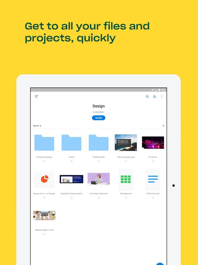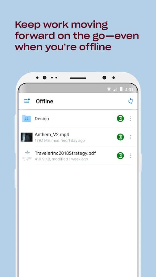 В android-приложении предусмотрена возможность редактировать документы в форматах Microsoft Office. Кроме того, можно настроить автоматическое сохранение всех ваших фото и видео с камеры. Созданные вами папки могут быть доступны и другим пользователям, если вы отправите им приглашение. Также есть возможность работать с отдельными файлами в автономном режиме.