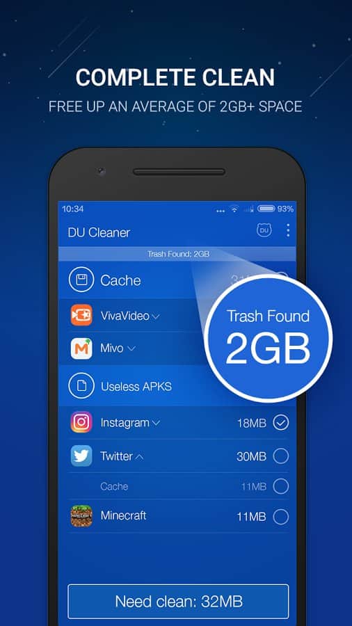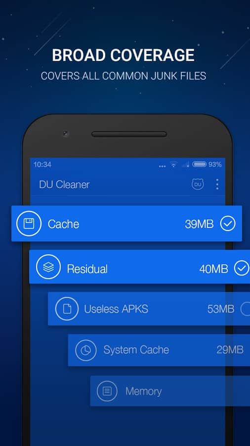 DU Cleaner представляет из себя не большое приложение, которое поможет вашему девайсу на андроид избавиться от не нужных файлов за несколько секунд. Вы сможете оптимизировать помять телефона и тем самым продлить жизнь батареи, которая так необходима для полноценного завершения рабочего дня.