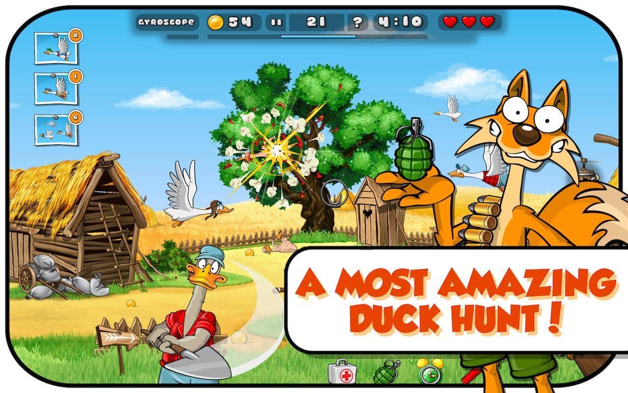 Duck Destroyer - Когда вы очень голодны, то вы берете дробовик и хотите добыть что-нибудь на ужин. Проверьте свое умение метко стрелять, сбивайте с неба стаи уток. Рогатки, пулеметы, динамиты- всё будет у вас в арсенале, чтобы добыть себе пропитание. Следите за путешествием забавного Лиса в 50 уровнях и более 150 миссий. Путешествуйте по всему миру, побывайте в Арктике, пофантазируйте в космосе вместе с забавными видами оружия. Мультяшная графика и звук очень развеселит вас.