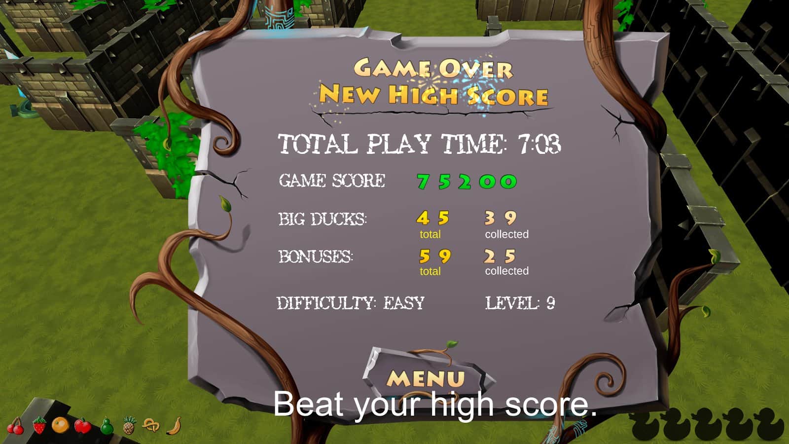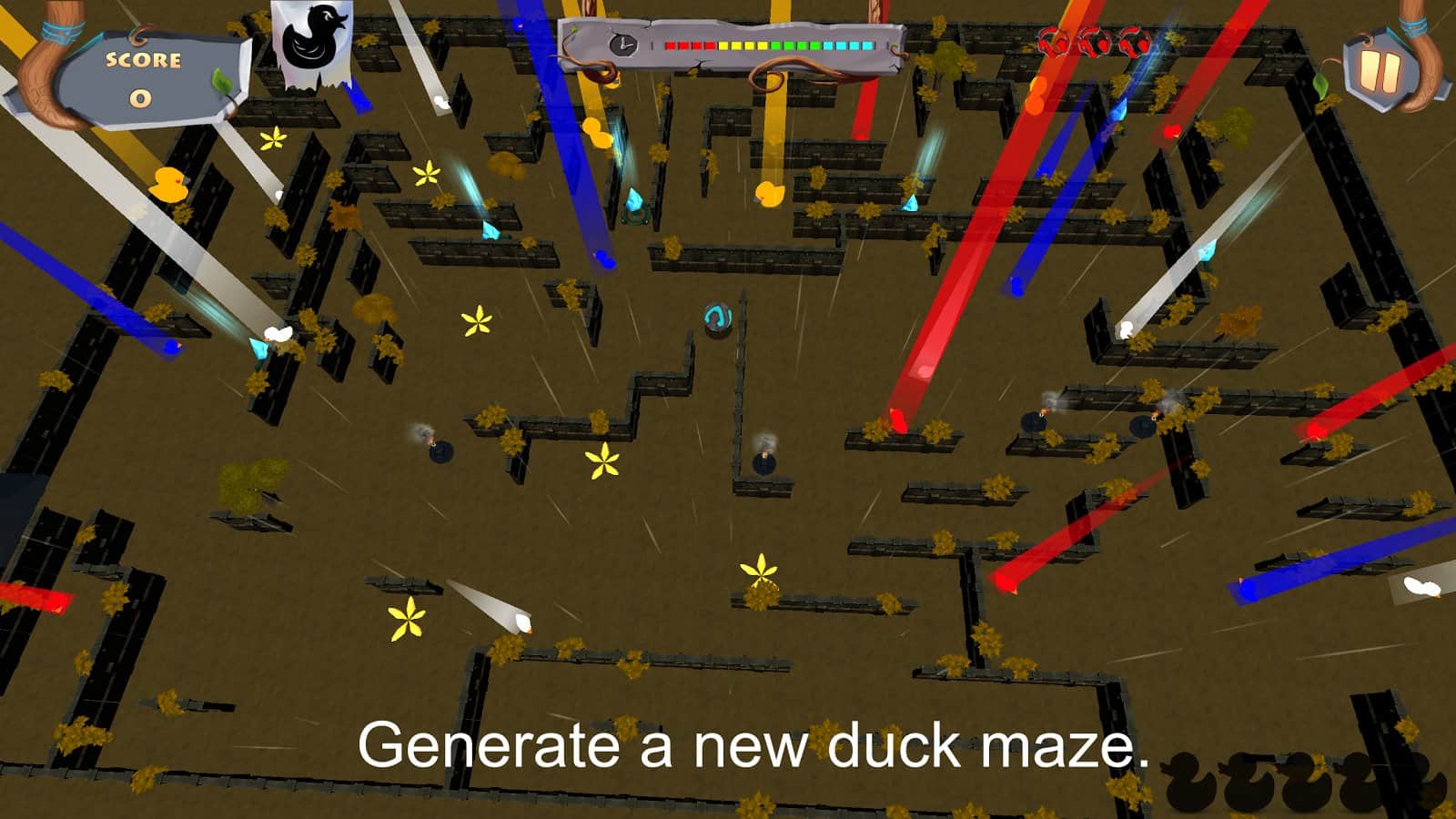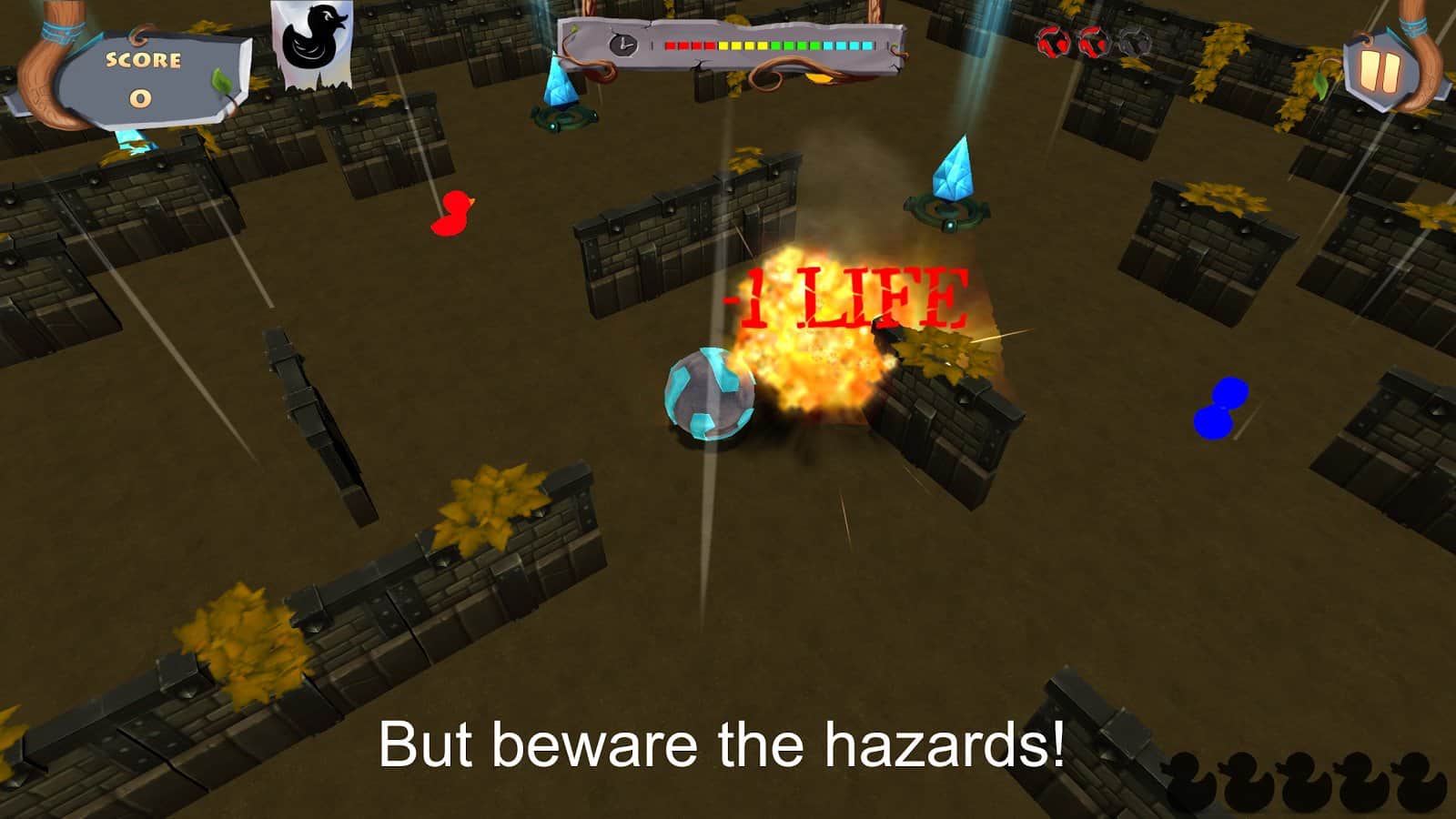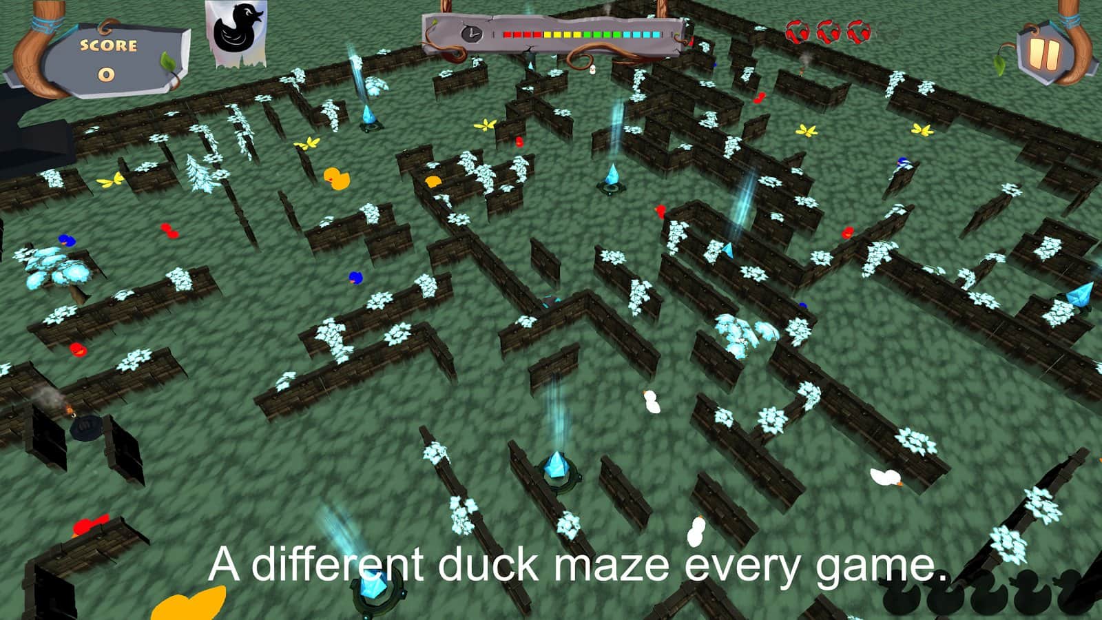 Duck Hair - The Game - довольно необычная игра по задумке авторов которой вам предстоит играть в неком утином мире, вам же отводиться роль утки супер - героя. Наверно многим после такого вступления может показаться что перед ними экшен - аркада или же платформер, но это далеко не так. Вам предстоит при помощи шарика кататься по лабиринтам собирая призы, а самое главное больших желтых уток, собрав пять штук которых вы получите пропуск на следующий уровень. При это стоит учитывать что лабиринты генерируются случайным образом, да к тому же полны всевозможными неприятными сюрпризами, циркулярными пилами, монстрами, падающими наковальнями. Да и физика в игре работает не так как в земных условиях, так что придется запостись терпением и немало постараться.