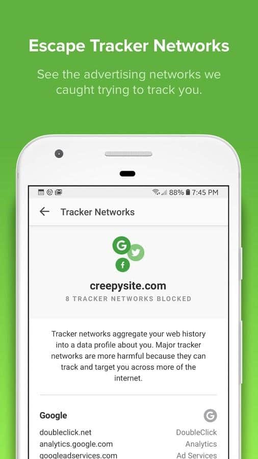 DuckDuckGo Privacy Browser - Это великолепная поисковая система которая на первое место ставит права пользователей. В отличии от всех нам известных поисковых систем, эта отличается своей анонимностью. Она никогда не собирает данные о своих пользователях, их местоположение адреса и многое другое. В первую очередь это ваша безопасность, так как никто не сможет узнать откуда был выполнен вход. Да и в целом это довольно удобный браузер с огромным количеством пользователей которые уже признали эту поисковую систему одной из лучших.