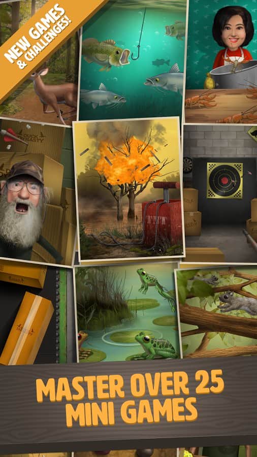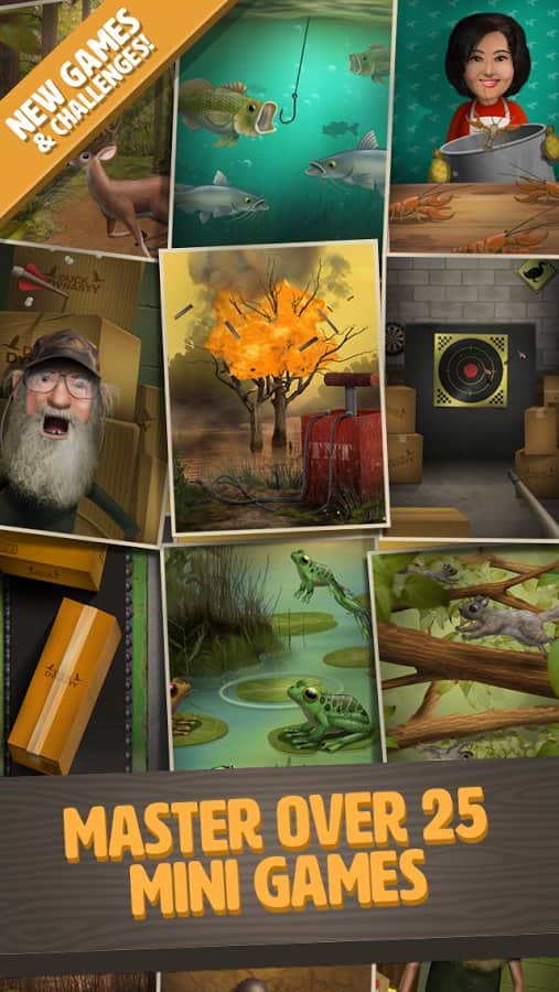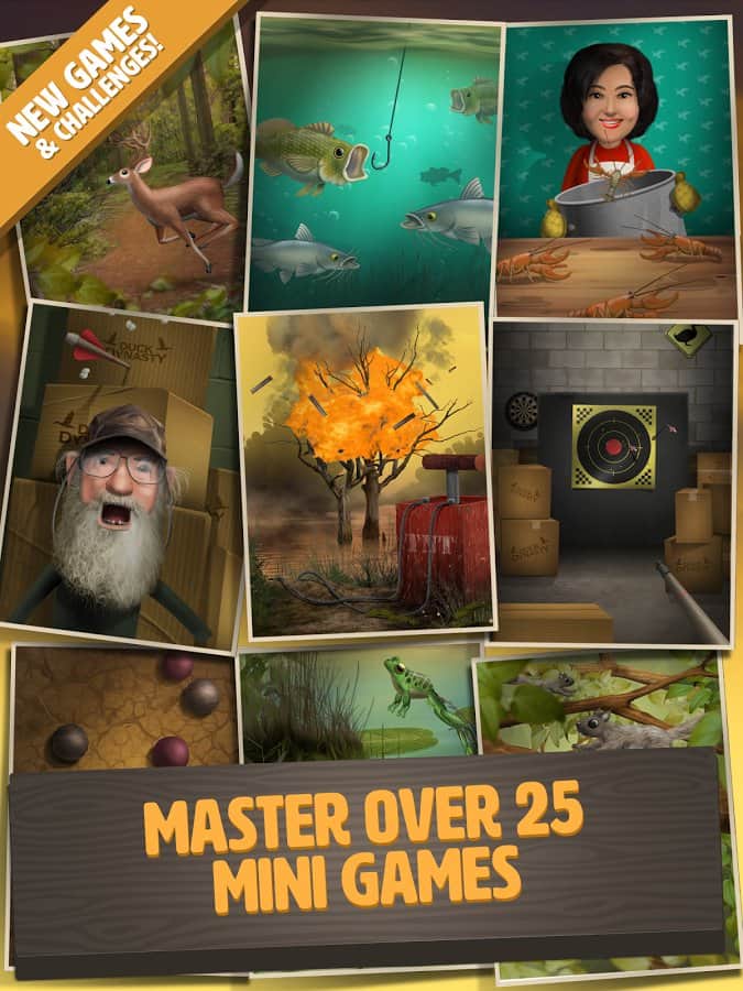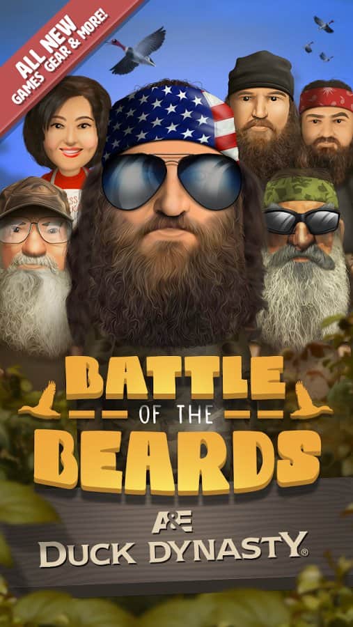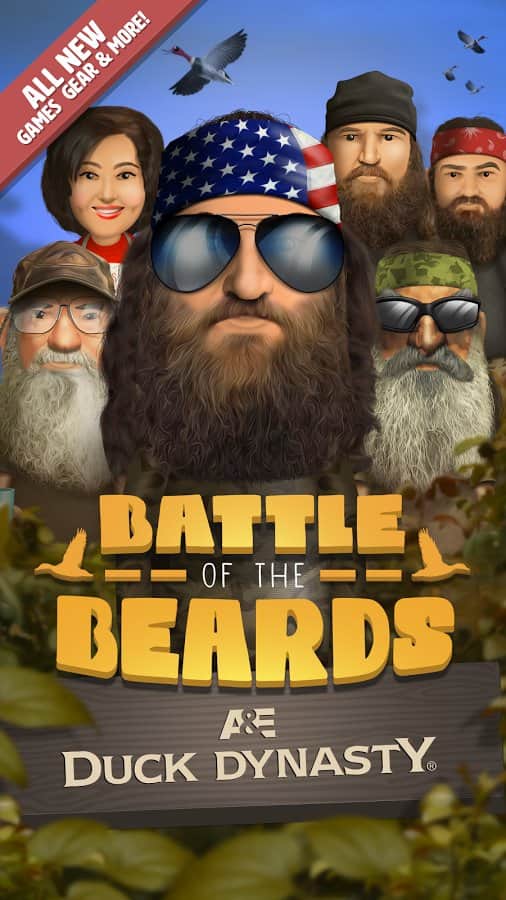 DuckDynasty:BattleOfTheBeards - игра на аndroid, по сюжету реалити-шоу династии Duck Америки. В этой игре вы будете проверять свои рефлексы и ловкость. Вам предстоит побывать на охоте, рыбалке, а также кормить своего героя различной едой. По мере игры ваш персонаж отрастит бороду, волосы и будет носить бандану чтобы походить на своих собратьев.