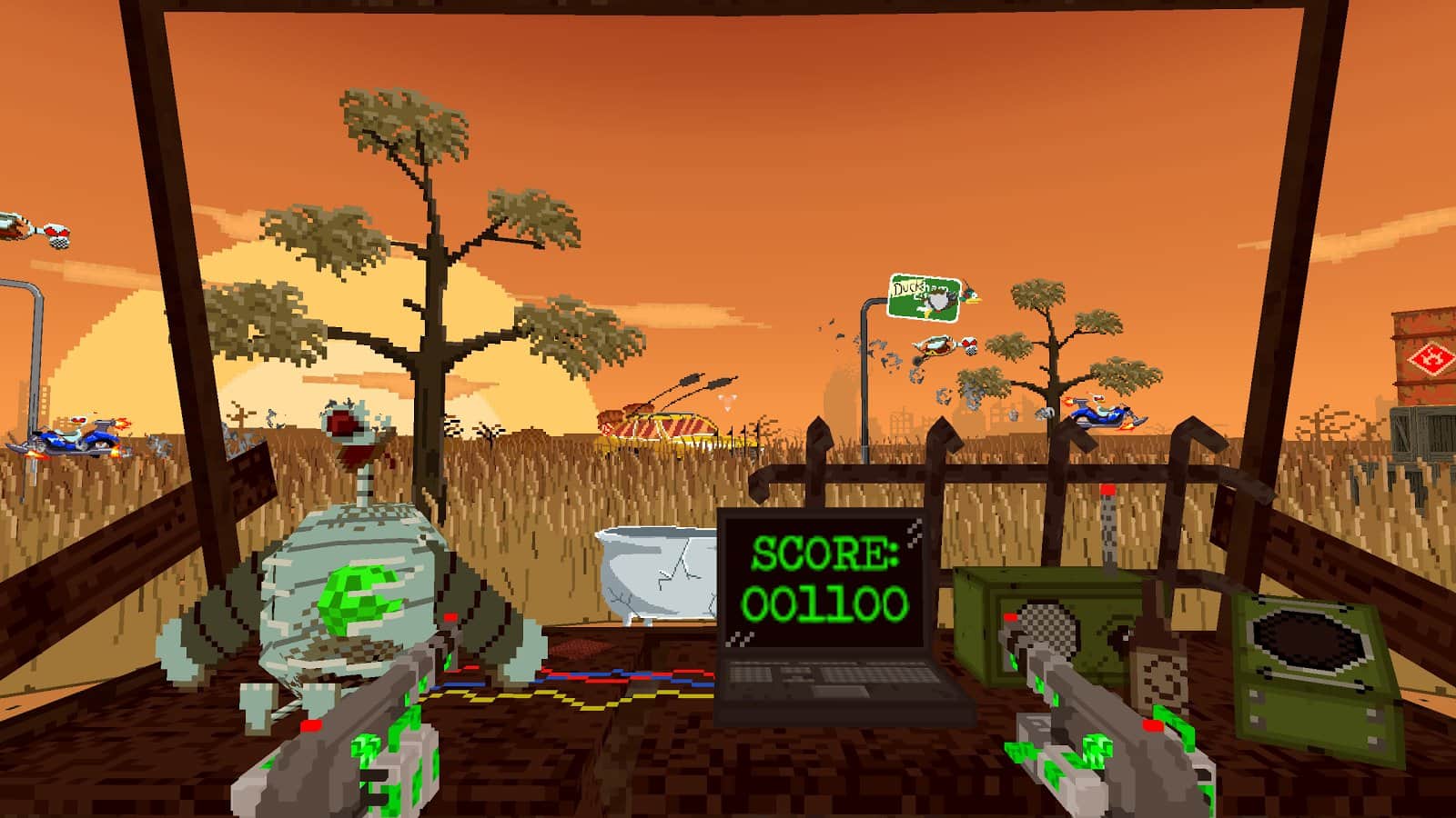 Технология дополненной реальности, в рамках мобильных платформ, набирает все большую популярность и в свет выходят даже простенькие аркады с поддержкой VR, ведь практически все последние устройства вполне справляются с техническими требованиями предъявляемыми данной функцией. Новая игра под названием Duckpocalypse VR отправит нас в далекое будущее, будущее в котором человечество развязало ядерную войну и практически уничтожило планету. Так люди были заняты войной, было принято решение создать роботов помощников, почему-то в виде уток, которые в скором времени стали гораздо умней своих создателей и принялись жить своей жизнью, тоже не брезгуя силовыми методами. Именно в роли одного из подобных роботов вам и предстоит играть.