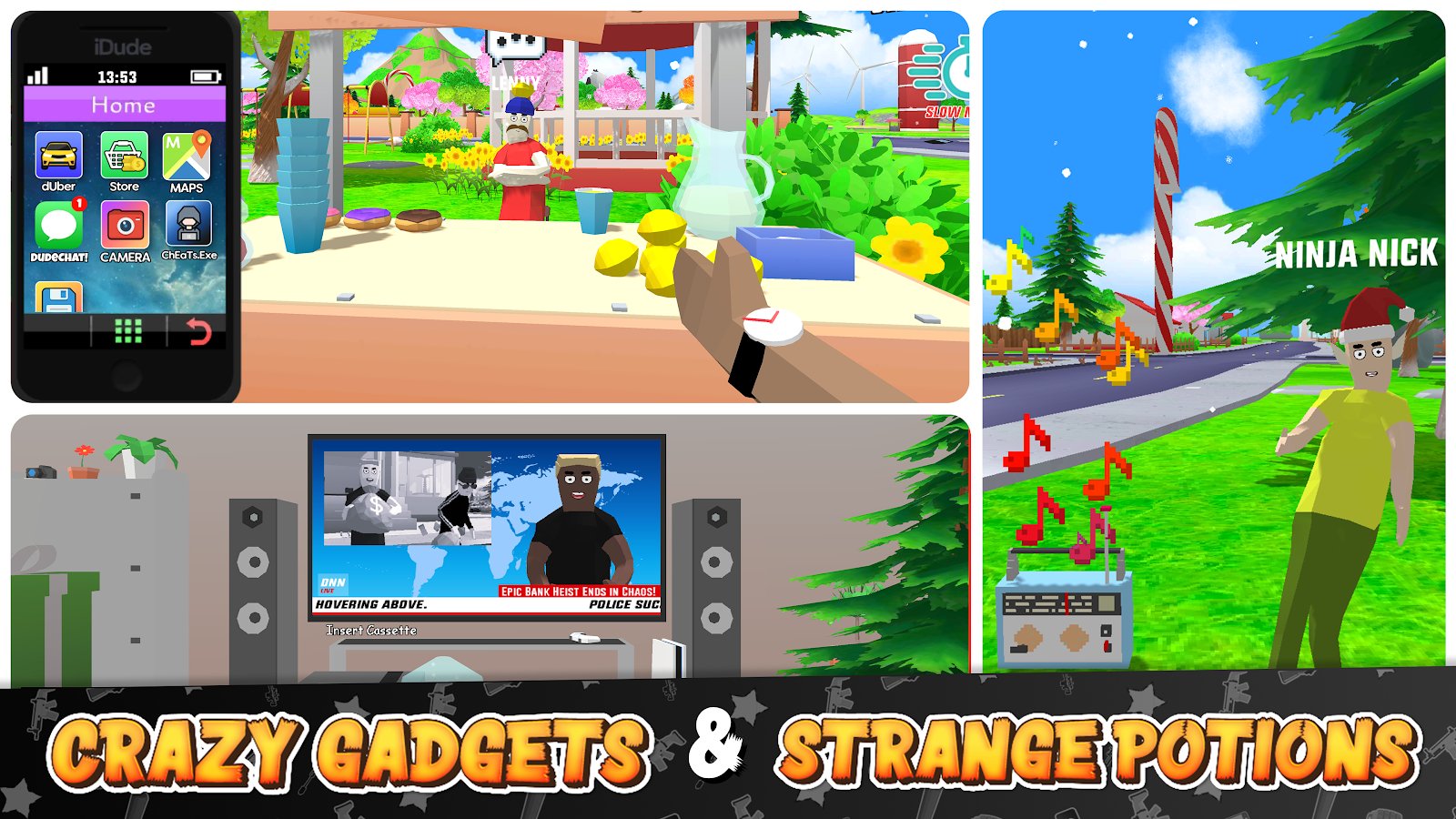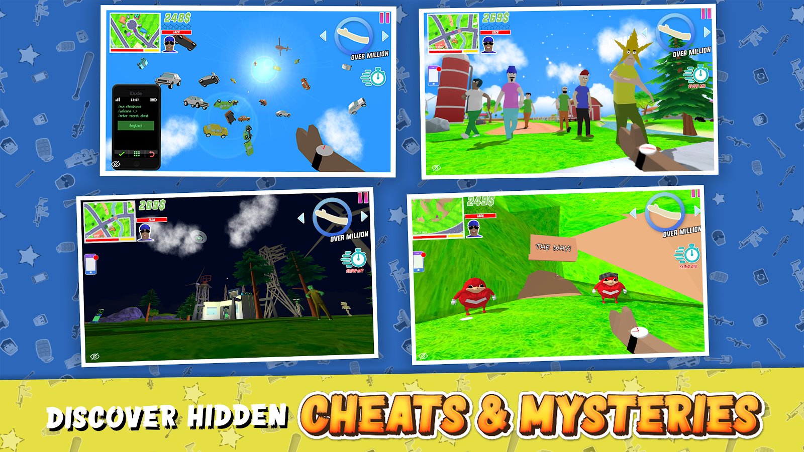 Dude Theft Wars: Open World Sandbox Simulator – увлекательный симулятор на андроид, где вы будете управлять главным героем. Игра откроет перед вами огромный мир песочницы, где вы будете делать все что захотите. Исследуйте город на украденной машине, совершайте ограбления, знакомьтесь с персонажами и своими соседями. Открывайте для себя различные виды оружия и присоединяйтесь к мафиозной группировки совершая крупные ограбления. Покупайте на украденные деньги новое оружие и спортивные автомобили. Создайте свою банду и станьте главой мафии.
