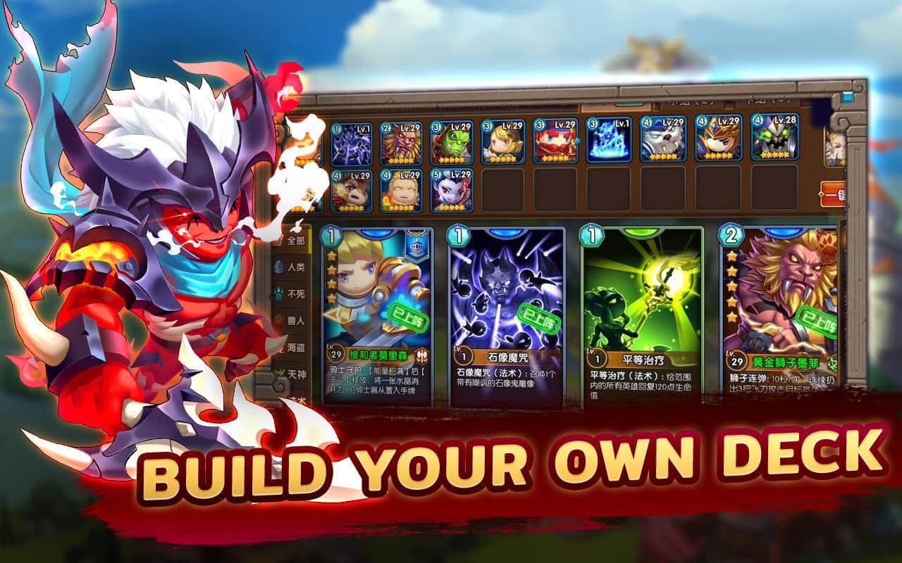 Duel Heroes – RPG на андроид, где вы будете собирать свою непобедимую коллекцию карт и сражаться с сильными противниками. В этой игре вашей главной целью будет собрать коллекцию карт и построить могущественное королевство в волшебном мире. Стройте здания различного назначения, захватывайте новые земли и атакуйте вражеские замки. Соберите команду героев, где каждый персонаж будет обладать уникальными навыками и характеристиками. Пополняйте свою коллекцию карт новыми персонажами и бросайте вызов реальным игрокам со всего мира. Всего в игре представлено 50 различных карт, 5 рас и несколько режимов игры.