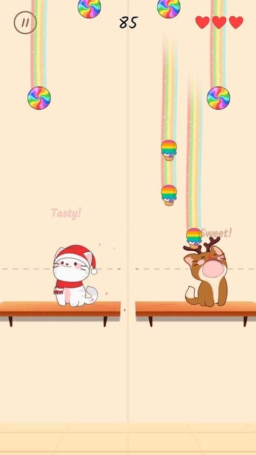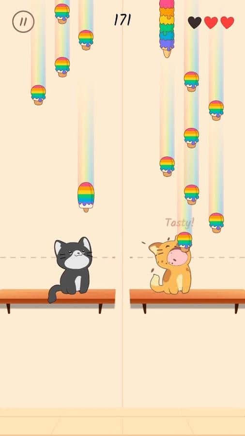 Duet Cats: Cute Popcat Music - Насладитесь компанией прекрасных кошек и окунитесь в мир музыки или развлечений, исполняя красивые мелодии вместе с вашими пушистыми друзьями! Преодолевайте музыкальные препятствия, выполняйте точные уловы вкусняшек, чтобы достичь идеального гармоничного звучания и поймать все падающее мороженое с верха. Каждый успешно выполненный уровень приведет вас ближе к музыкальной славе и новым захватывающим мелодиям. Развлекайтесь с ними, украшайте Кошачью Башню и не забывайте вовремя кормить их кошачьей едой.