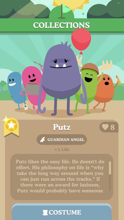 Dumb Ways To Die 3 : World Tour – продолжение увлекательной аркады на андроид, где вы будете помогать бобам спасать город Dumbville. В этой игре вашей главной задачей будет выполнить все опасные миссии игры и не дать бобам погибнуть. Путешествуйте по трем различным локациям и преодолевайте знойную пустыню на самолете, скатывайтесь на лыжах с крутых заснеженных склонов и отправляйтесь в космос, исследуя различные планеты. Старайтесь делать так, чтобы ваши бобы не пострадали при путешествии, а если все же такое случится, отправляйте их в больницу и зашейте. По пути своего следования не забывайте собирать монетки и бонусы и обходите многочисленные преграды на пути.