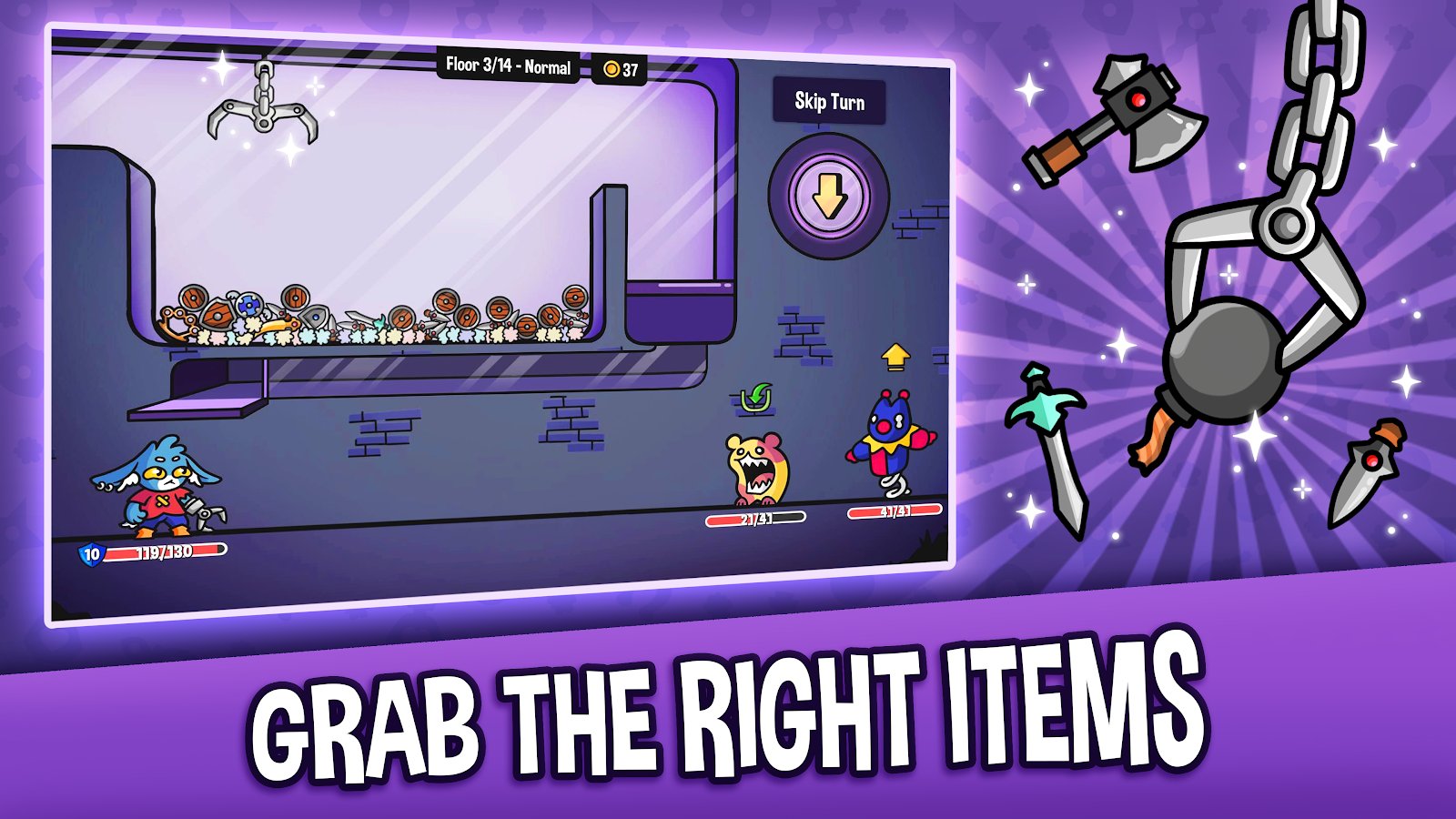 Dungeon Clawler - Соберите свою колоду, вооружитесь уникальными предметами, извлекая их с помощью клешни, и отправляйтесь в захватывающее приключение по подземельям, полным опасностей. Вас ждут случайно генерируемые уровни, эпические битвы с боссами и ценные артефакты, которые помогут вернуть утраченное - вашу потерянную кроличью лапку! Только самый отважный сможет одолеть злого повелителя подземелий! Ловите оружие, броню и другие предметы, выхватывая их из автомата, и используйте свою добычу для победы над врагами.