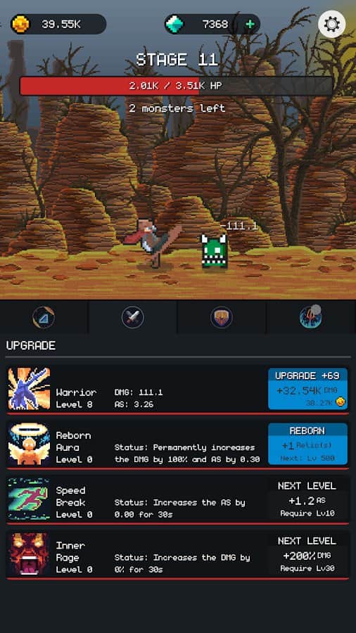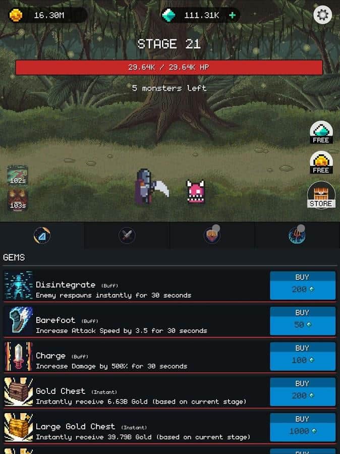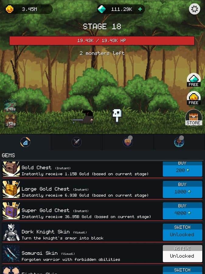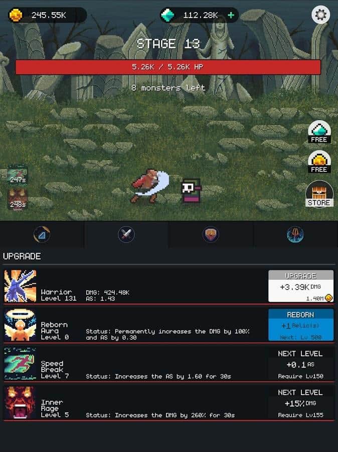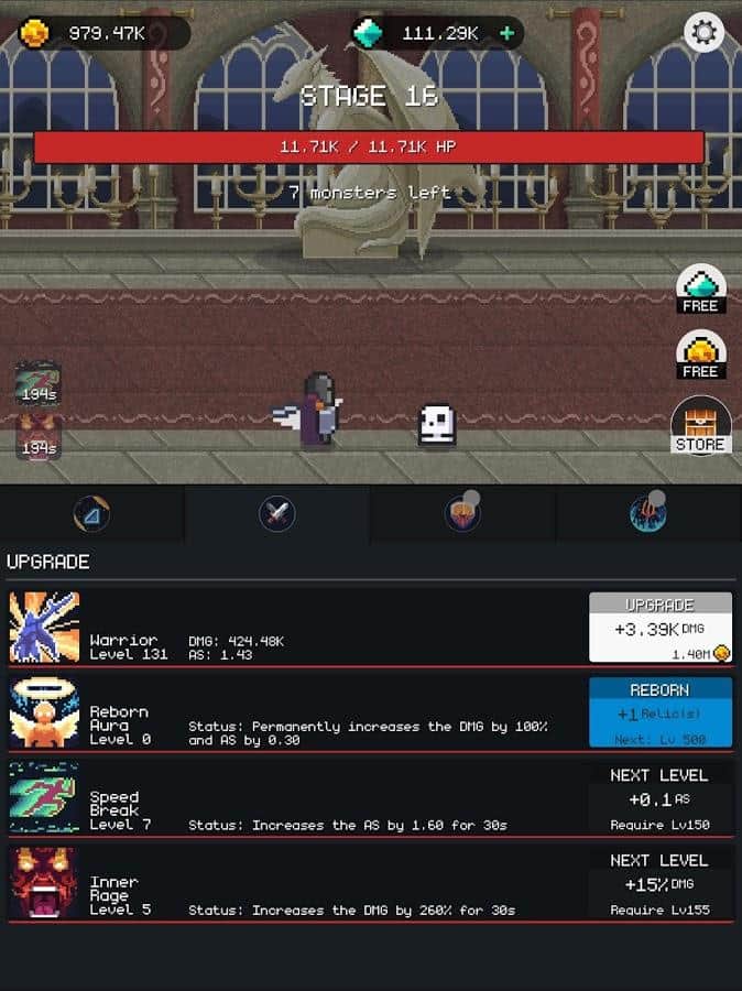 Dungeon Gates: Idle RPG -игра, которой вы сможете наслаждаться бесконечно! Управляйте отважным героем и вместе с ним проходите испытания и опасные миссии. Он сделает практически все сам, вам лишь нужно будет его направить. Проходите квесты и выполняйте опасные задания, получайте баллы и прокачивайте свои способности. Побеждайте мелких монстров и доберитесь до опасных боссов, наберитесь достаточно храбрости, чтобы бросить им вызов. В эту игру вы сможете играть всегда и везде и наслаждаться сохранённым прогрессом, ставить новые рекорды и забирать награды.