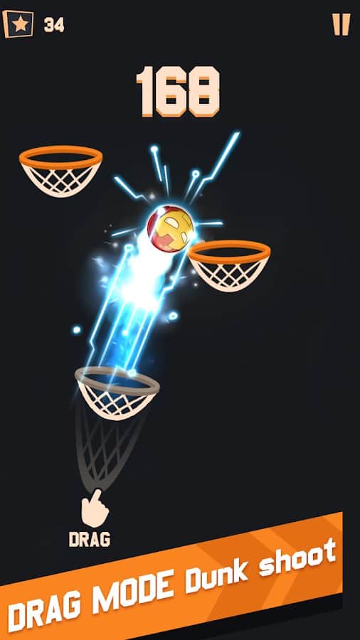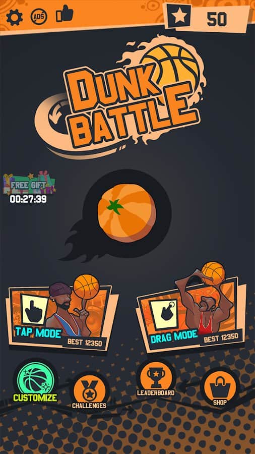 Dunk Battle – спортивная игра на андроид, где вы будете забрасывать мяч в баскетбольную корзину. В этой игре вашей главной задачей будет нажимать на экран в нужный момент и забрасывать мычи в кольцо. Приложите всю свою ловкость пальцев и отличную реакцию и добивайтесь отличных результатов. Выбирайте из двух режимов подходящий вам и нажимайте на экран, либо водите по нему пальцем. Закидывайте как можно больше мячей в кольцо и получайте отличные награды, а также открывайте для себя новые мячи с уникальным дизайном и необычными эффектами.
