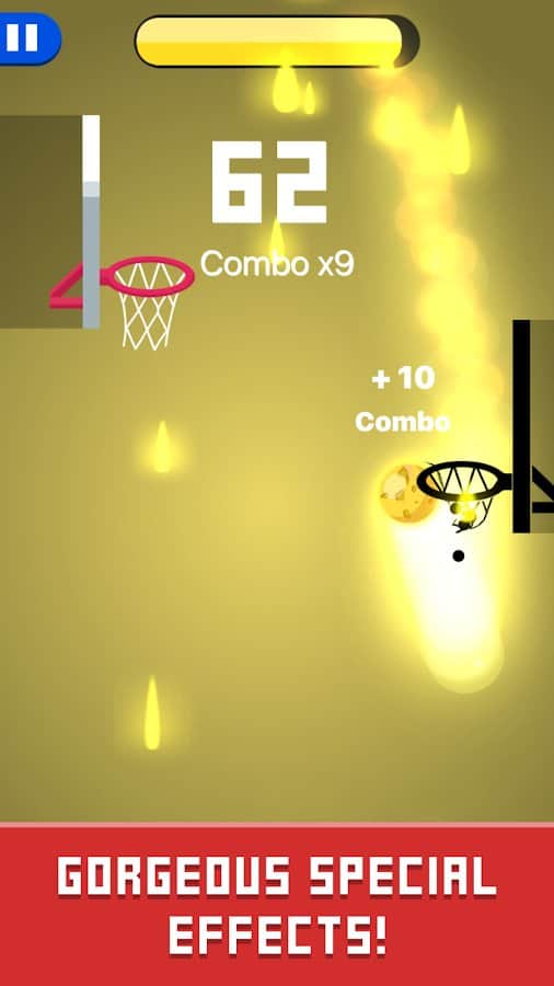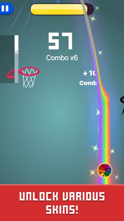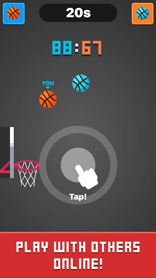 Dunk Hot – захватывающая спортивная игра на андроид, где вы будете играть в баскетбол. Возьмите под свой контроль мяч и заказывайте его в кольцо как можно чаще. Нажимайте на экран своего телефона или планшета в нужный момент и забрасывайте мяч в корзину, которая будет появляться с разных сторон от вас. Зарабатывайте очки и баллы и открывайте для себя новые скины для мячей. В игре вы найдете несколько режимов игры, среди которых классический режим с бесконечным временем, режим сезон где вам непрерывно необходимо закинуть 30 мячей за ограниченное количество времени и PVP соревнования с реальными игроками.