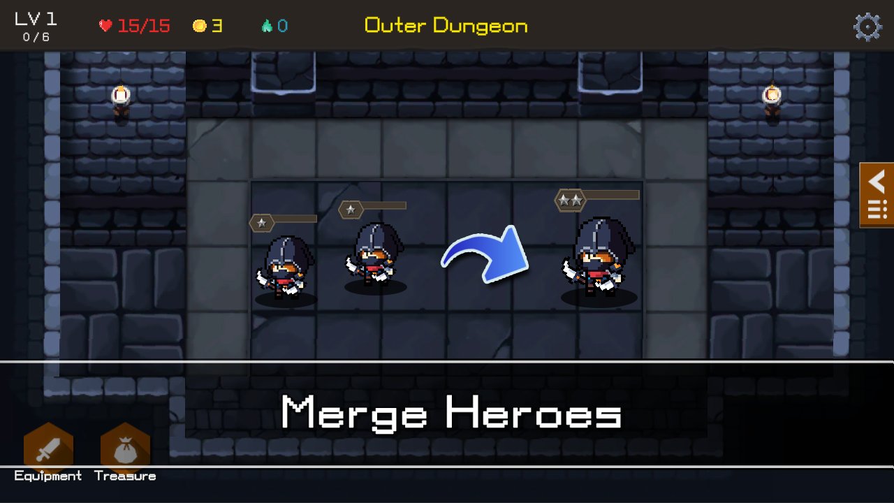 Оружие и доспехи можно добыть в бою или купить у Торговца, усиливая своих героев.