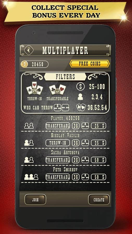 Дурак карточная игра - знаменитая карточная игра теперь и на ваших мобильных экранах. Играйте онлайн со своими друзьями и другими соперниками со всего мира. В игре представлены три вида этой игры: классический, подкидной, переводной. Играть можно вплоть до 4-х человек, также предусмотрена игра с компьютером. Управление удобное, и не требует ни какого привыкания к нему.