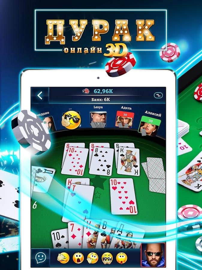 Дурак Онлайн 3D" позволяет наслаждаться всеми известно игрой в режиме онлайн со другими реальными игроками. Можно сыграть в переводного, подкидного дурака и с разным количеством карт.