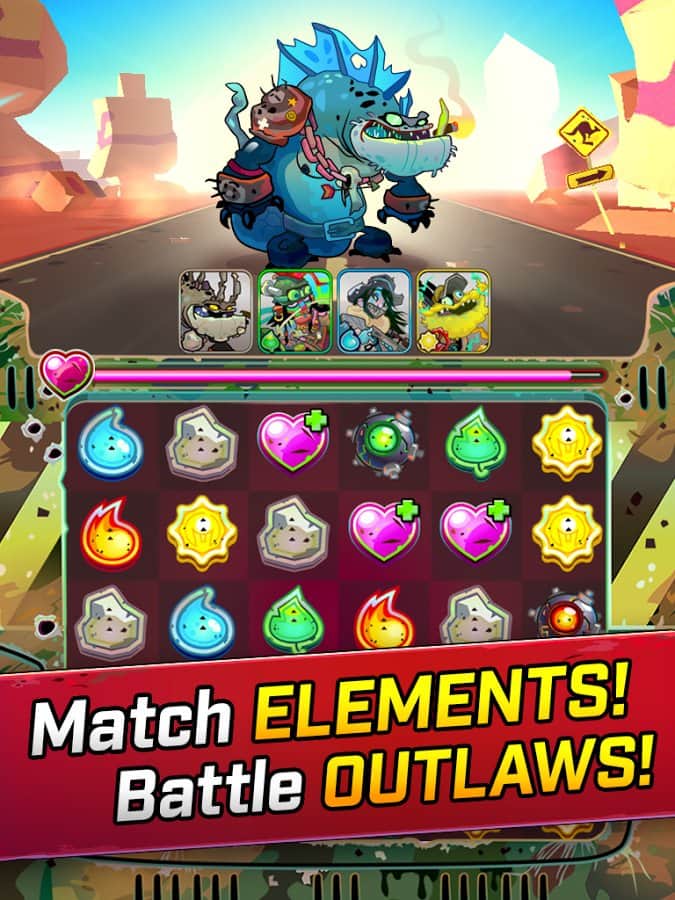 Dustland – головоломка на андроид, где вы попадете в мир охотников за головами и изгоев. В игре вы будете играть за изгоев, которые путешествуют по пустынным землям и уничтожают своих врагов. Соберите свою непобедимую команду воинов и сражайтесь с преступниками собирая по три и более одинаковых объектов в ряд. Каждый изгой обладает своими уникальными навыками и способностями. Создавайте свои отряды с друзьями и побеждайте врагов вместе. Чем длиннее вы соберете ряды из одинаковых объектов, тем сильнее вы сможете нанести удар охотникам за головами. Примите свое участие в различных и акциях приводимых каждый день.