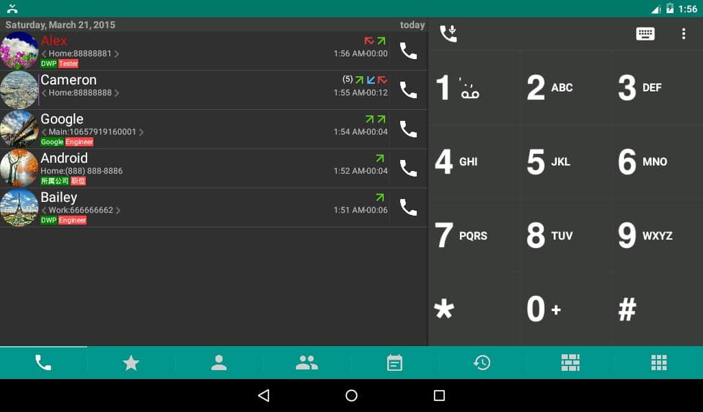 DW Contacts & Phone Pro - Разнообразьте своё меню контактов различными графическими элементами. Так же вы очень упростите себе жизнь, если будете использовать управление жестами. Так простым скролом в бок вы откроете меню сообщений для определенного контакта. Всевозможные статистики, фильтры и множество другого, собрано в одном простом приложении с простым управлением и понятным интерфейсом. Все его функции можно перечислять очень долго, так что просто скачайте и опробуйте сами.