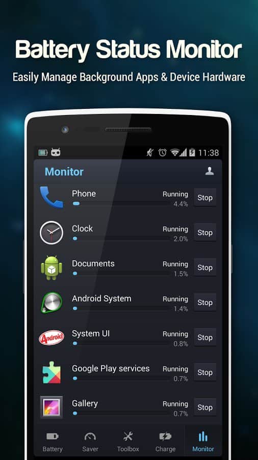 DU Battery Saver Pro – приложение на Андроид, продлевающее жизнь заряду вашей батареи. Приложение весьма качественно следит за зарядом телефона (3 этапа - быстрый, полный и плавный). Но тоже не всегда, если только батарея разряжена менее 20%. Есть монитор системы, который наглядно покажет программы и процессы, которые отнимают драгоценный заряд. DU Battery Saver Pro имеет красивые и практичные виджеты управления питанием, которые не только украсят ваш телефон, но и сделают работу с ним ещё приятнее. В программе 3 главных режима: энергосберегающий основной спящий режим которые могут включаться автоматически, если вы это зададите. Кроме того вы можете добавить свой режим со своими уникальными настройками. Режимы переключаются автоматически от состояния батареи и периода времени, или же вручную с виджета на рабочем столе. Имеется виджет для быстрой очистки памяти, если нужно.