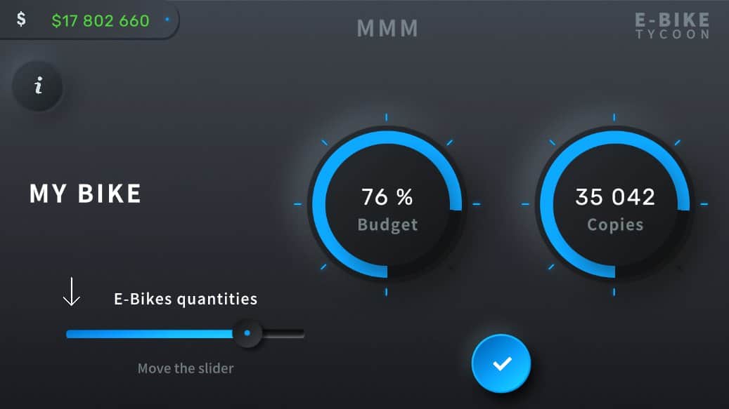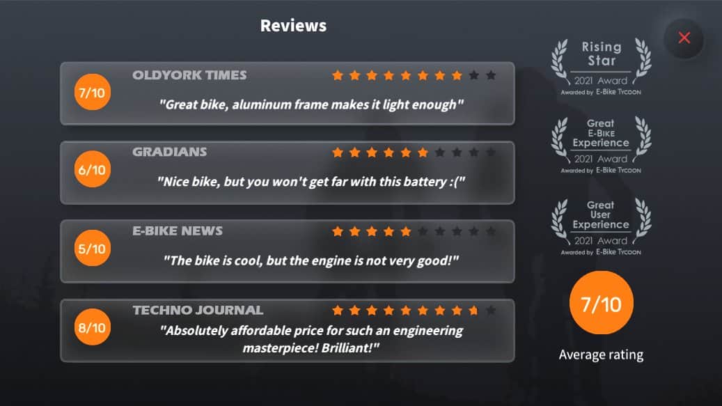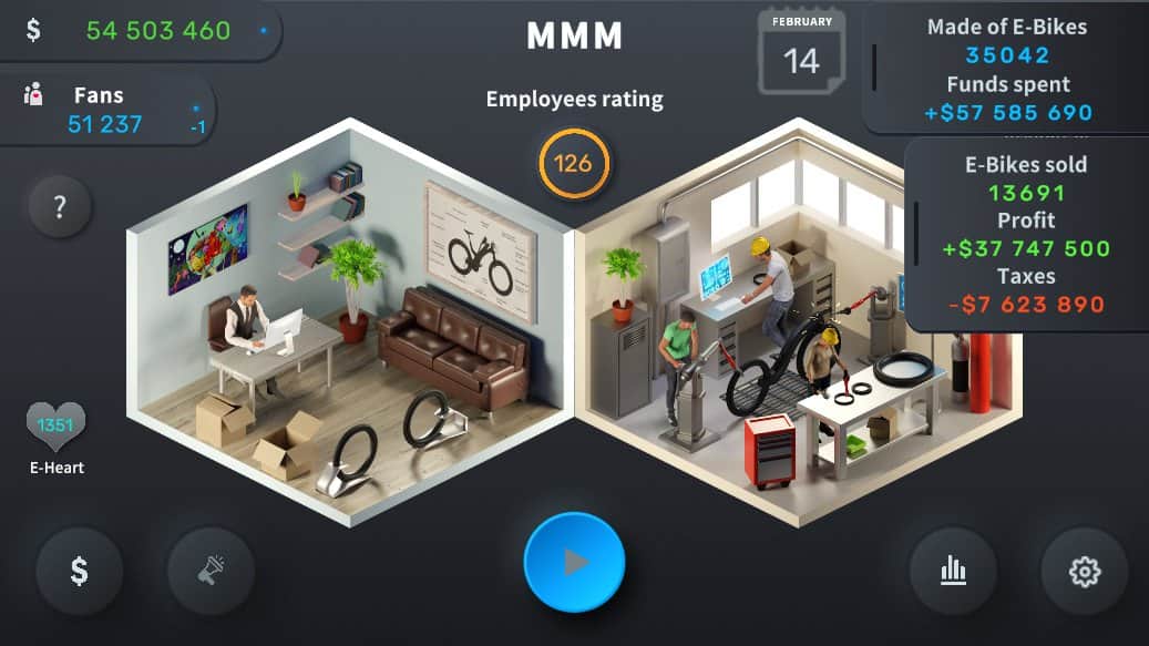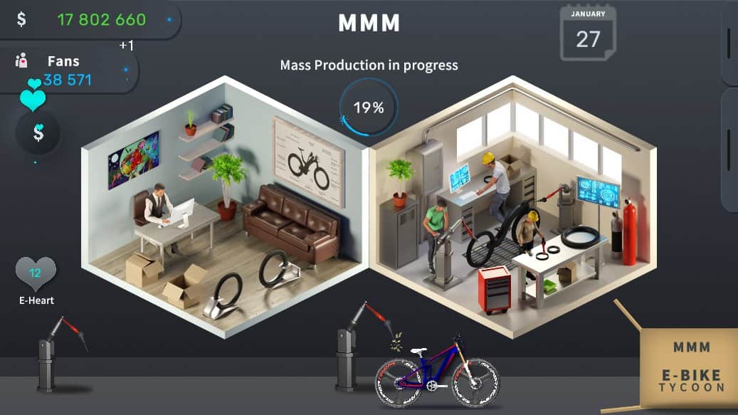 E-Bike Tycoon - В данной игре игроку предлагается взять на себя роль основателя и руководителя компании, занимающейся разработкой и продажей электрических велосипедов. Основная цель игры - создать успешный бизнес, начиная с разработки прототипа электровелосипеда, получения отзывов от потенциальных клиентов, принятия предварительных заказов и заканчивая организацией массового производства, управлением маркетинговой стратегией и эффективным использованием бюджета. Процесс игры включает исследование новых технологий, покупку запчастей и постоянное совершенствование продукции для повышения ее конкурентоспособности на рынке.