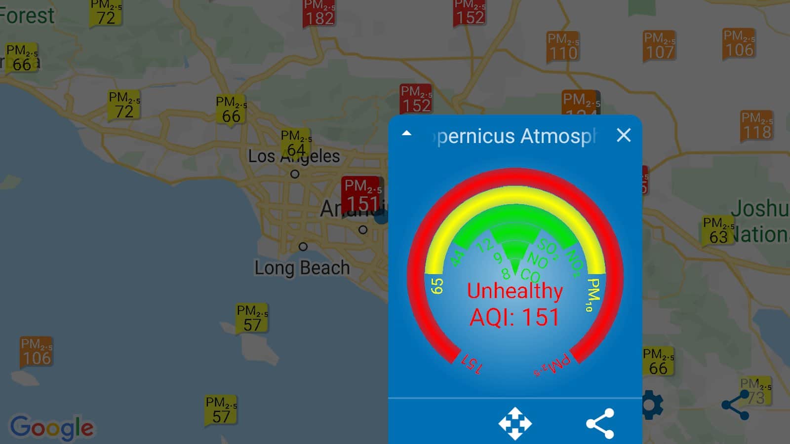 Программа eAirQuality позволяет отслеживать и анализировать уровень загрязнения окружающей среды, просматривать индекс качества воздуха.