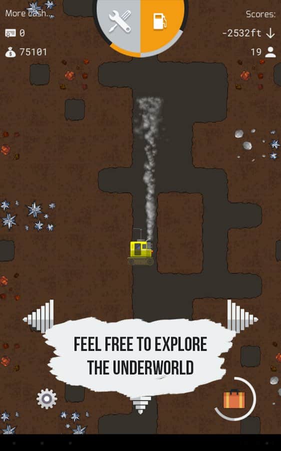 Earth Explore – игра в которой вам предстоит стать первооткрывателем и вгрызаться в недра земли на бурильной машине. Погрузитесь с головой в эту увлекательную игру и открывайте для себя новые тайны и ценную руду, которая таит в себе земля. Исследуйте все области которые представленные в игре, наслаждаясь бесконечными глубинами и добывайте ценные минералы, которые пригодятся ученным для исследований. Экспериментируйте и устанавливайте новые обновления для бурильной машины, чтобы добиться богатства и успеха. Играйте со своими друзьями и выясните кто среди вас самый лучший шахтер. Впереди вас ждут различные обновления в виде новых функций, машин, предметов для поиска и окружающих сред.