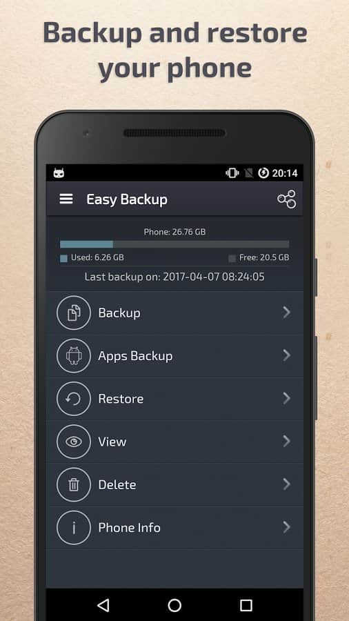 Easy Backup & Restore - Храните на смартфоне слишком много важных для вас данных? Не бойтесь их потерять, вместе с этим приложением, это станет практически нереальной задачей. Все что вам нужно, это запустить его, выбрать нужные пункты и создать резервную копию данных. Резервные копии можно хранить на другом устройстве, карте памяти или же вообще сбросить их в облачное хранилище. Однако стоит заметить что восстановление данных будет произведено на момент их записи, и те сообщения и другие данные что были записаны после, вы потеряете навсегда.