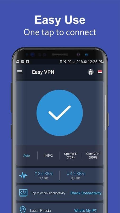 Easy VPN является лучшим бесплатным неограниченным VPN прокси-клиентами для Android. Приложение на андроид девайсы, которое позволит вам подключатся к сайтам и играм которые в вашей стране по каким либо причинам не работают. Все что вам нужно это запустить приложение, выбрать нужную страну и нажать "готово"!