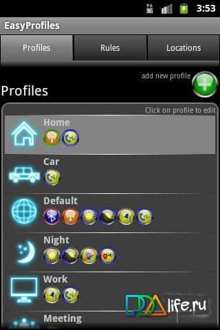 EasyProfiles – очень удобный менеджер профилей для андроид устройств, благодаря которому вы с легкостью можете переключаться между профилями, стоит лишь настроить их и делайте это как вручную, так и автоматически. Скачайте бесплатно и установите приложение пройдя по ссылке приведенной ниже. Все для вашего удобства и комфорта!